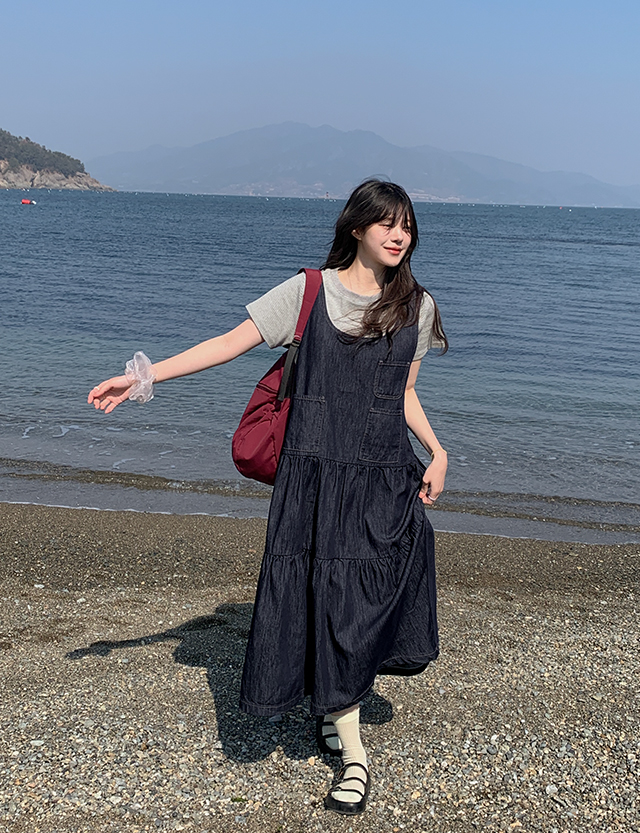 [논페이드] 페티나 뷔스티에 牛仔 長款 洋裝 87038