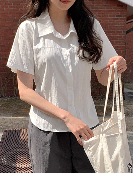 한여름까지 입는 綁帶 領口 短袖 襯衫 87289