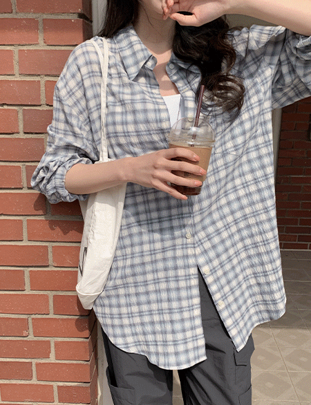 [살안타템] 고실고실 옷장필수로 챙겨입는 寬鬆 格紋 襯衫 87290
