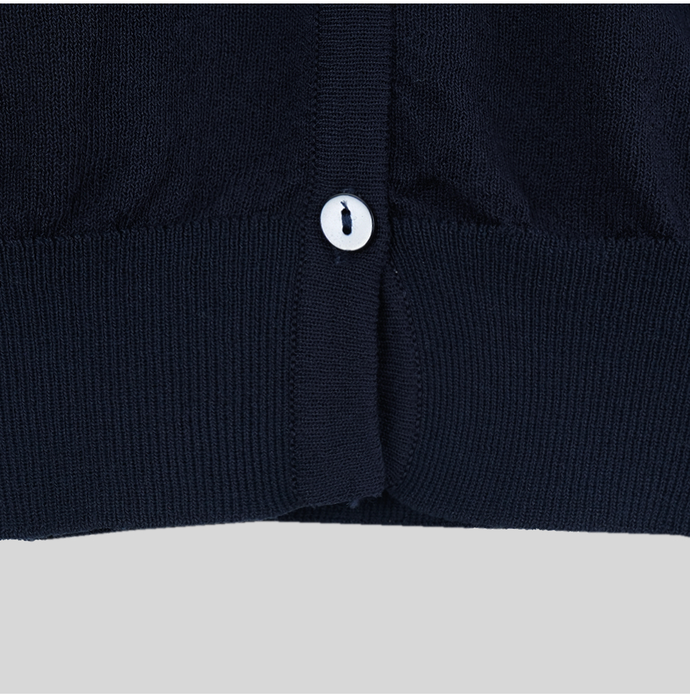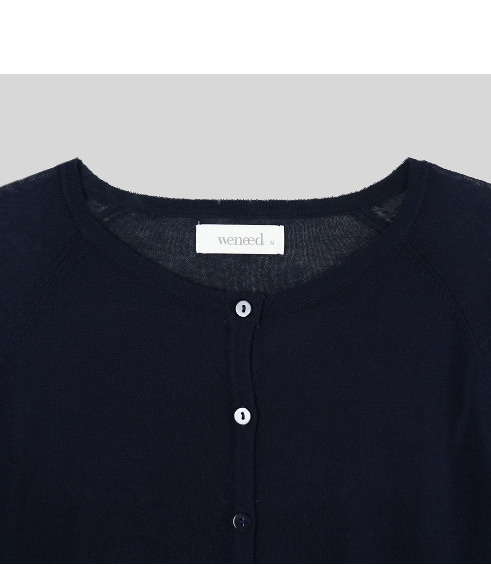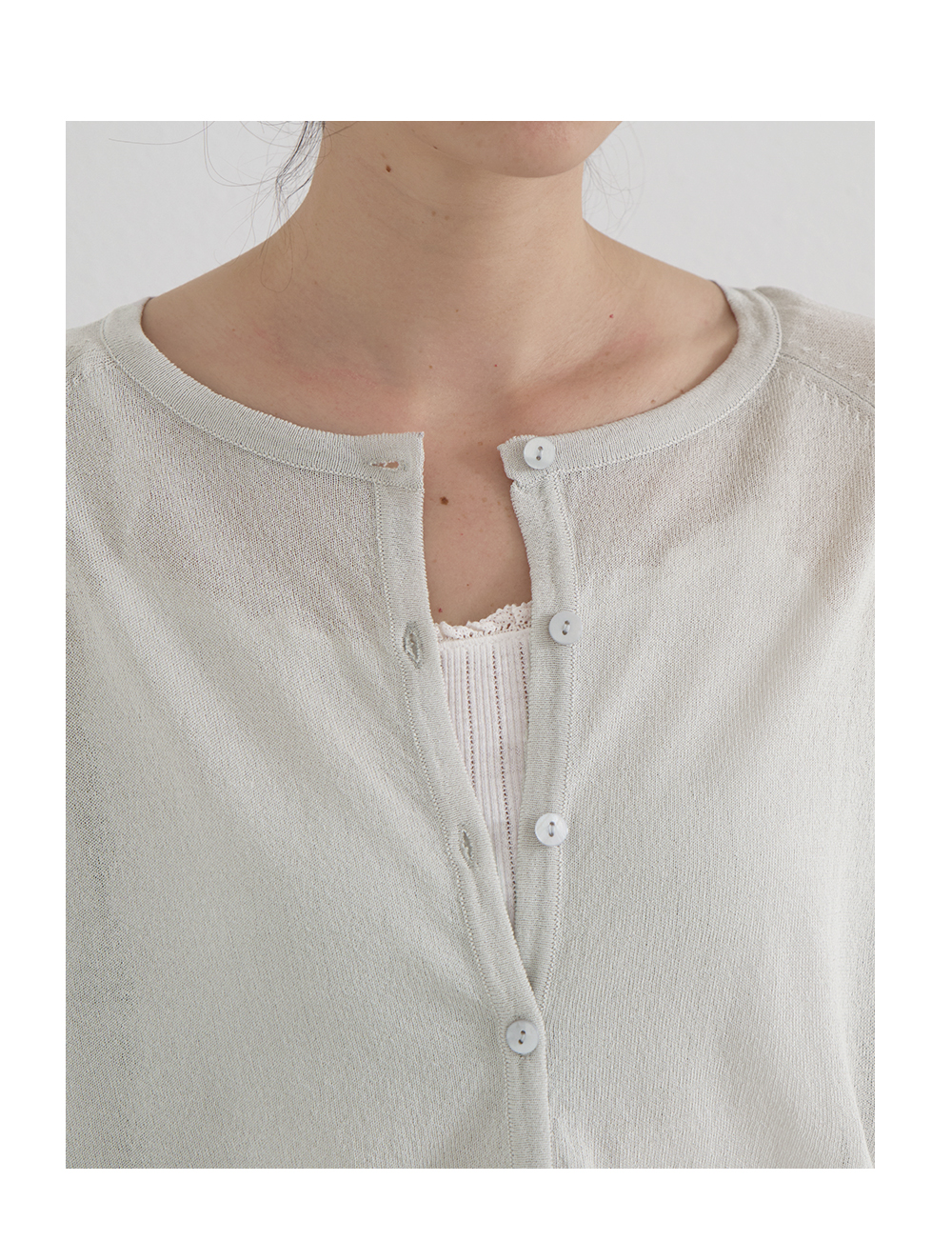 부담스럽지 않은 깊이의 라운드넥 잔잔하고 고급스러운 자개 단추 디테일