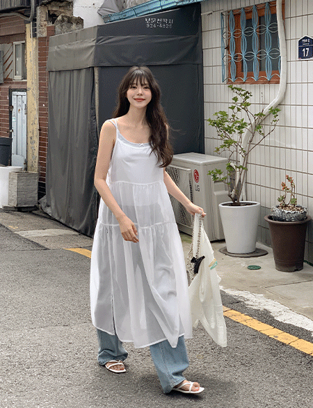 봄타나봐 透膚 分層 뷔스티에 長款 洋裝 87404
