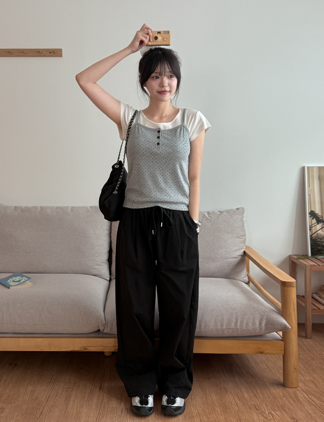 - 허리 전체 밴딩에 스트링 디테일로 편안하게 착용