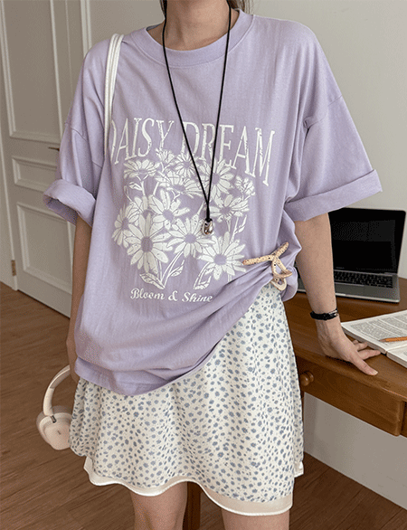 • 플로어 寬鬆 데이지 短袖 T恤 87455
