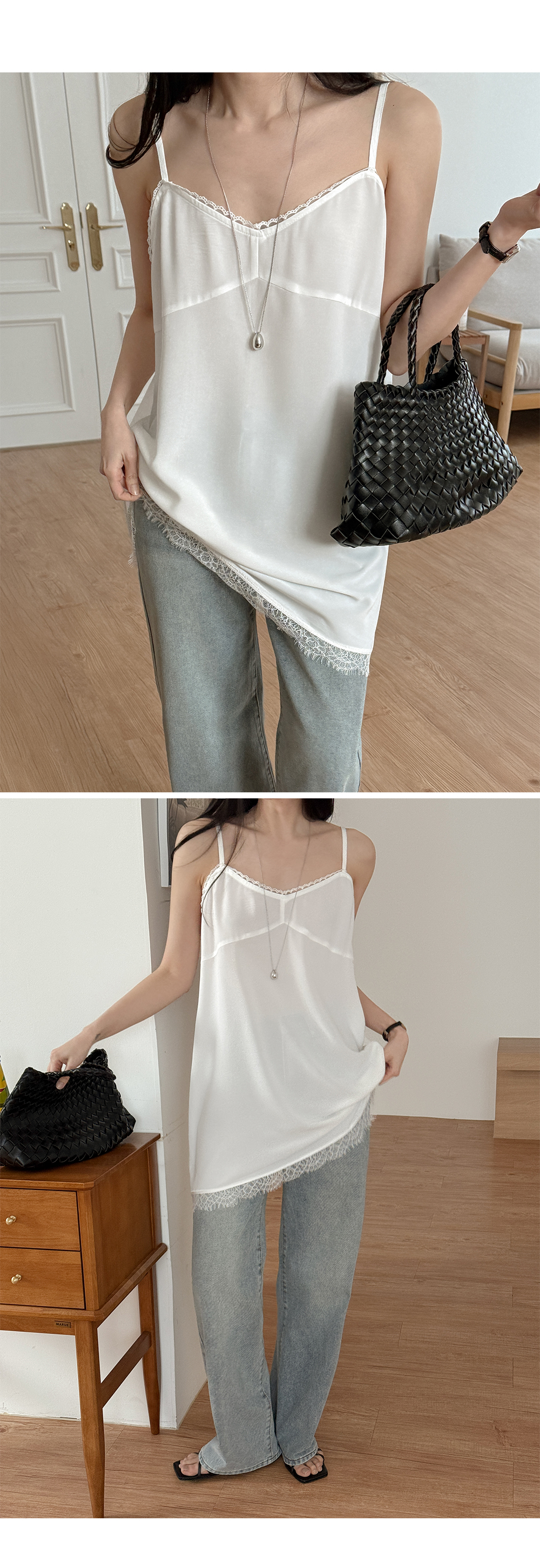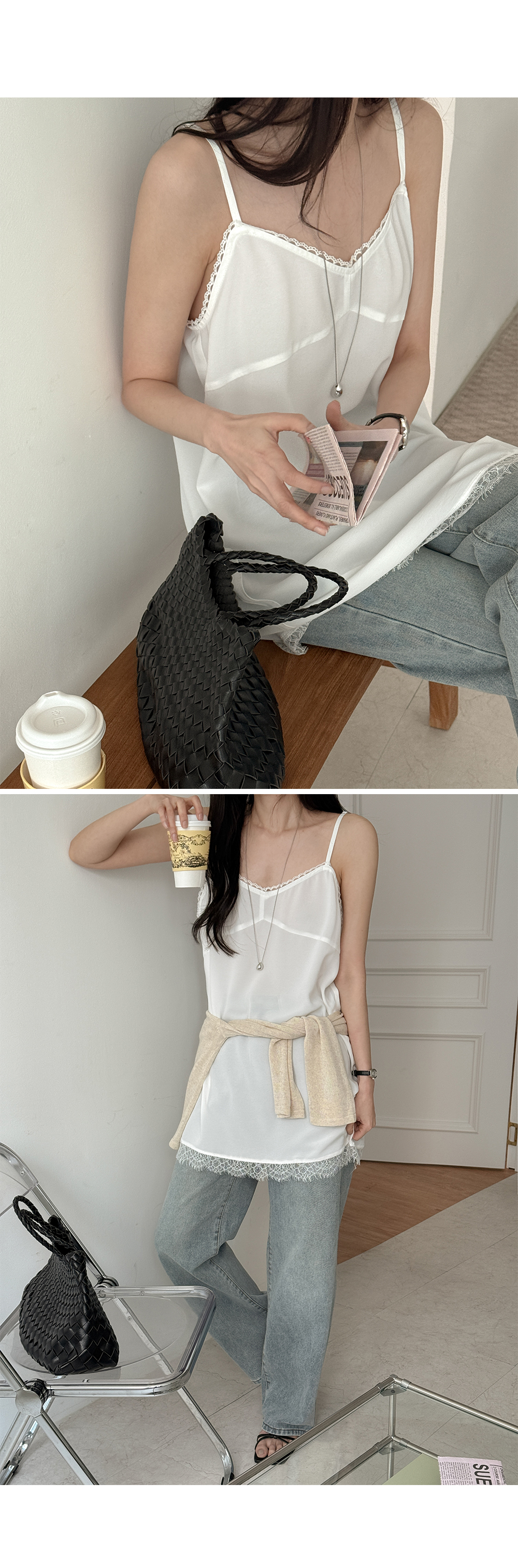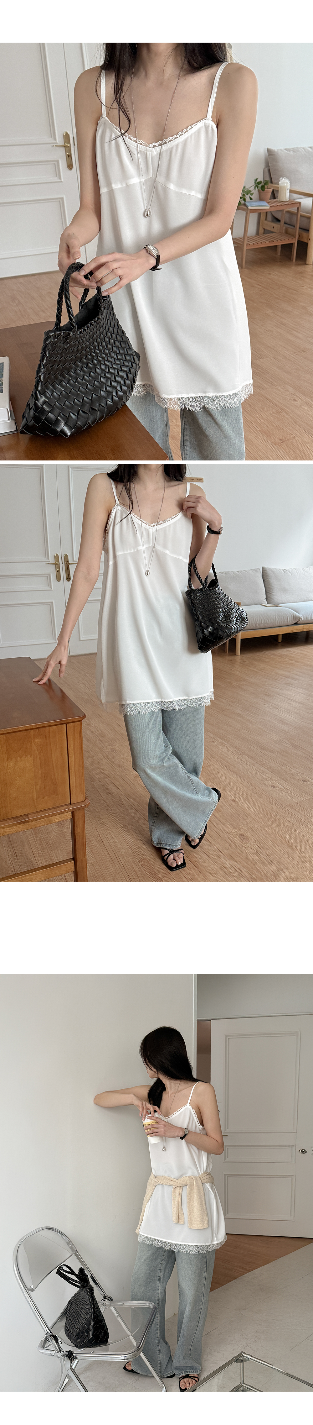 - 밑단 레이스 마감으로 은은한 디테일 완성도
