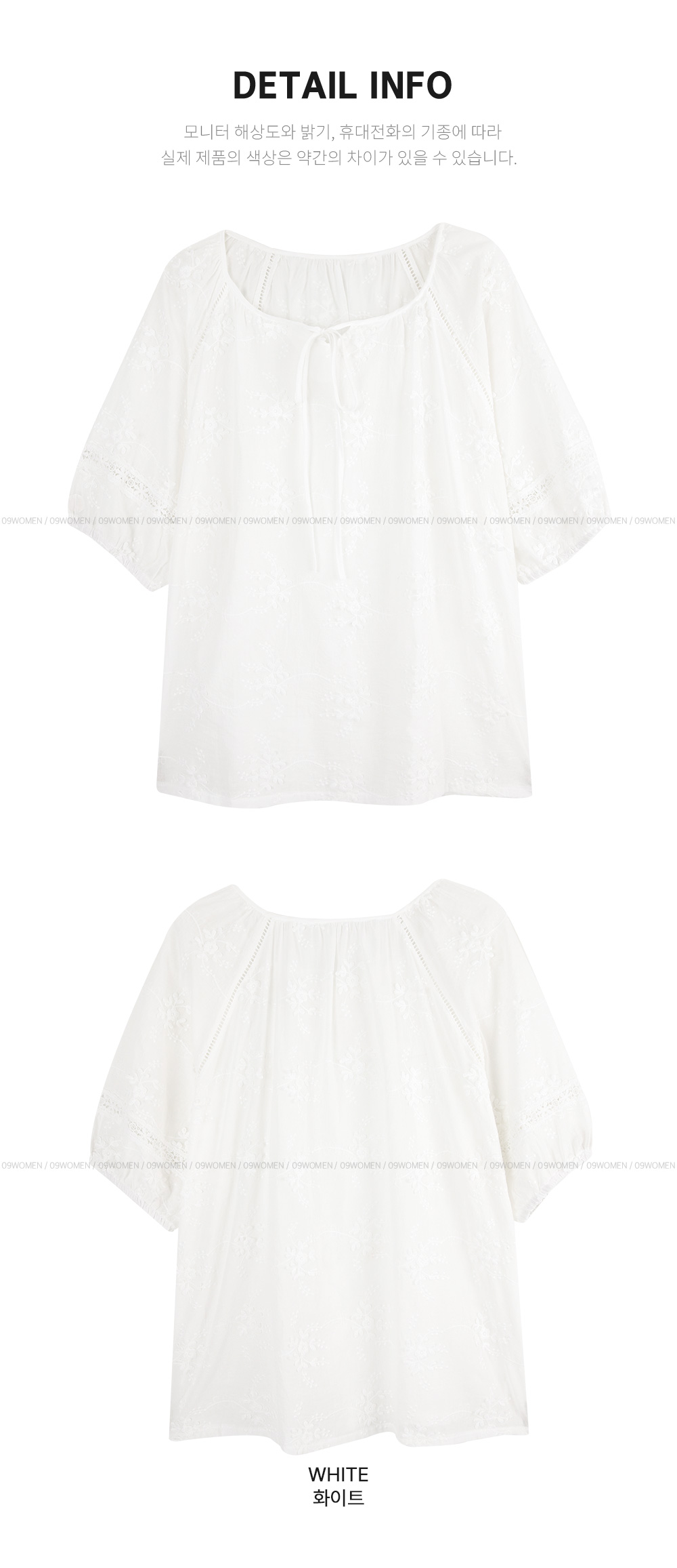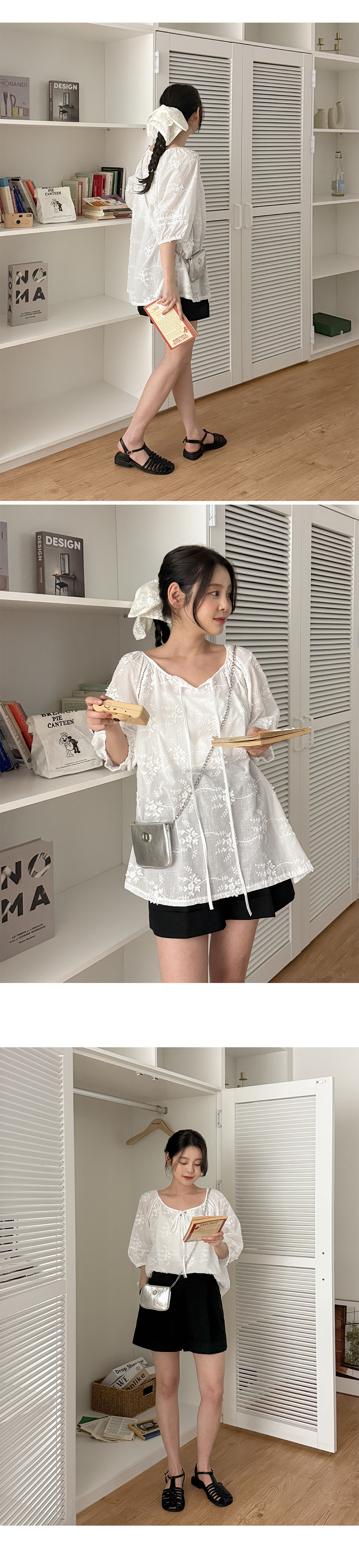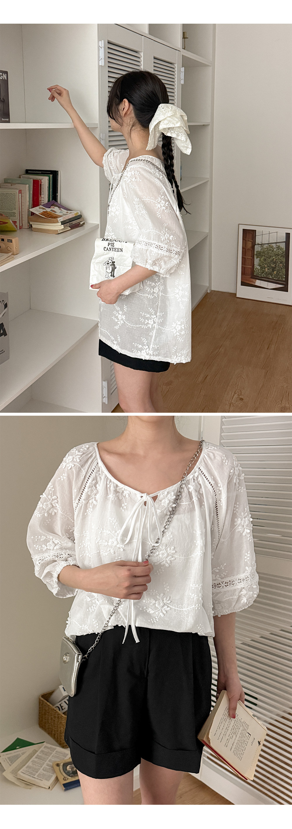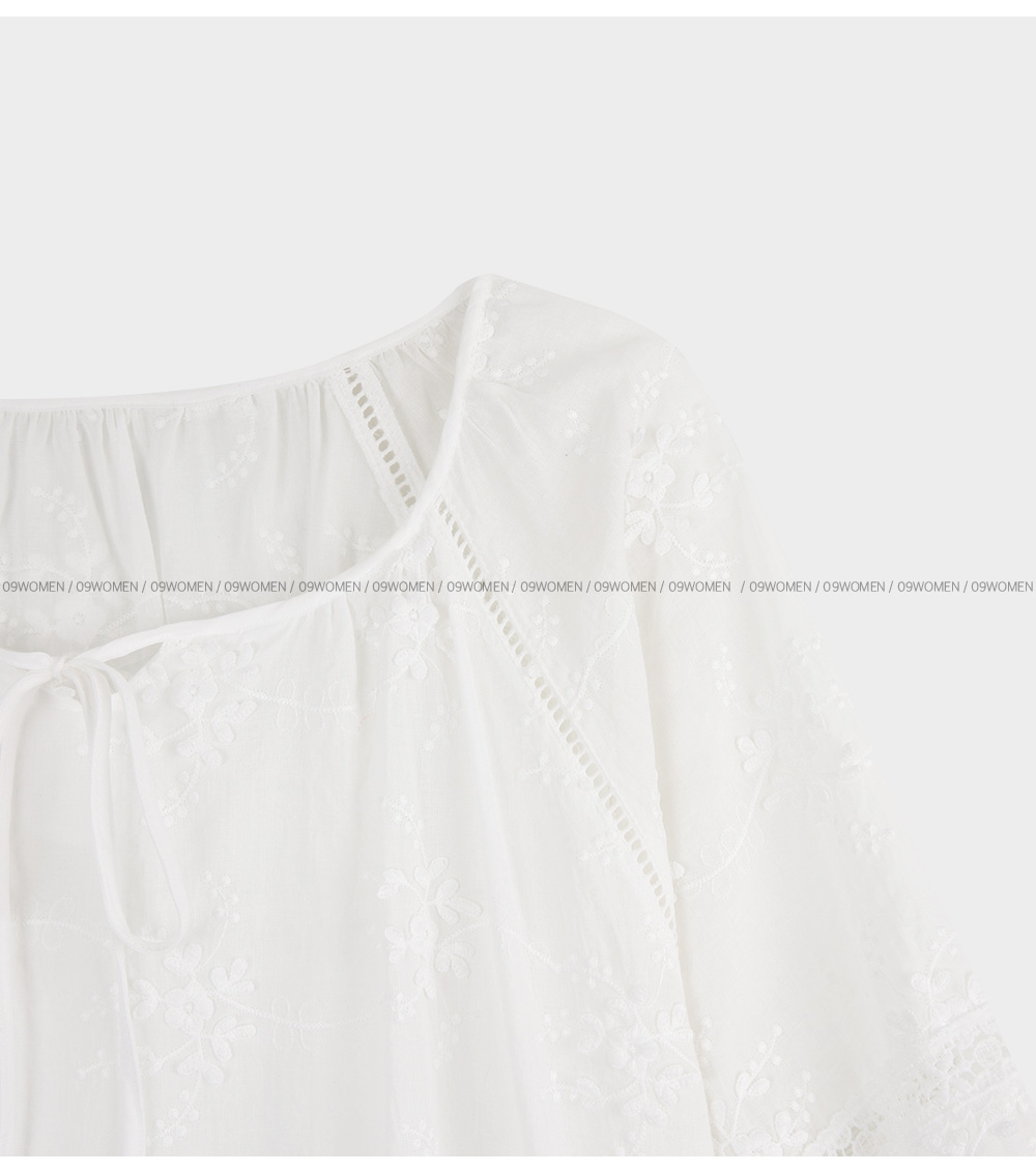 - 루즈한 실루엣의 플라워 자수 블라우스