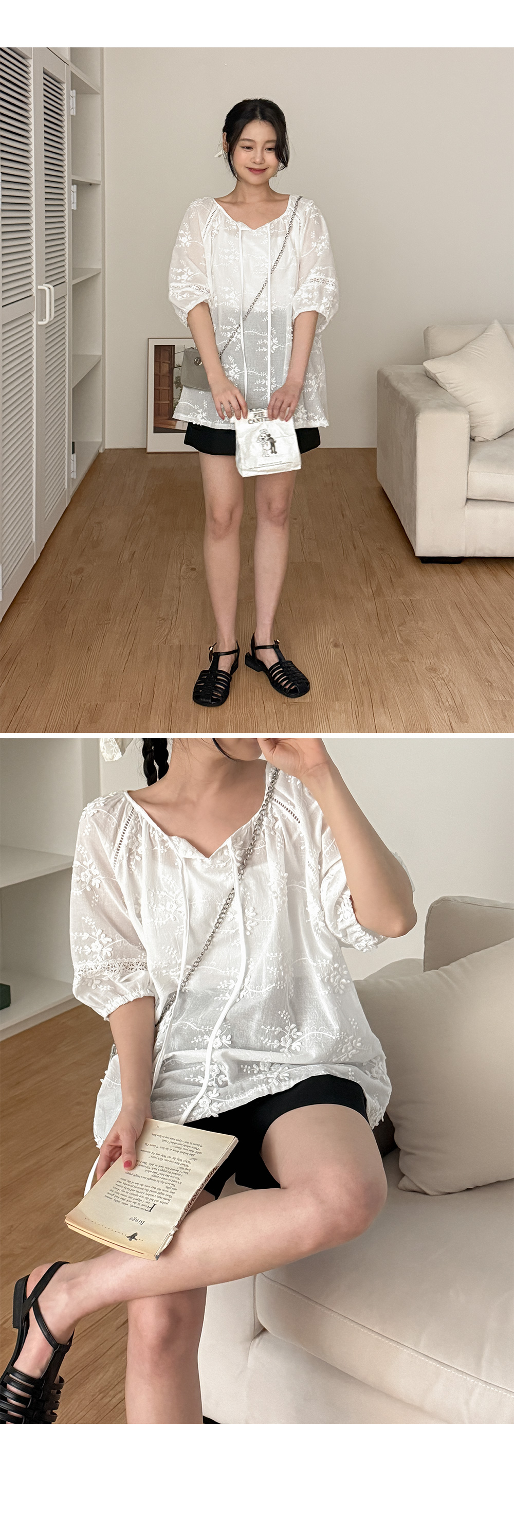 - 살결이 은은하게 비치는 얇은 소재감으로