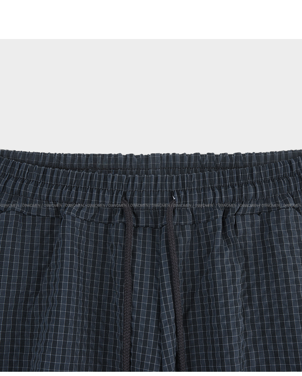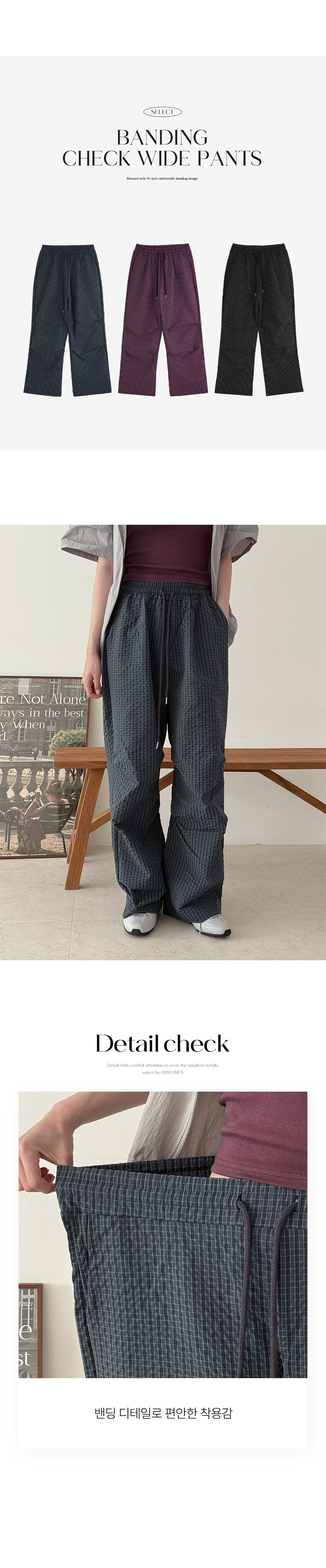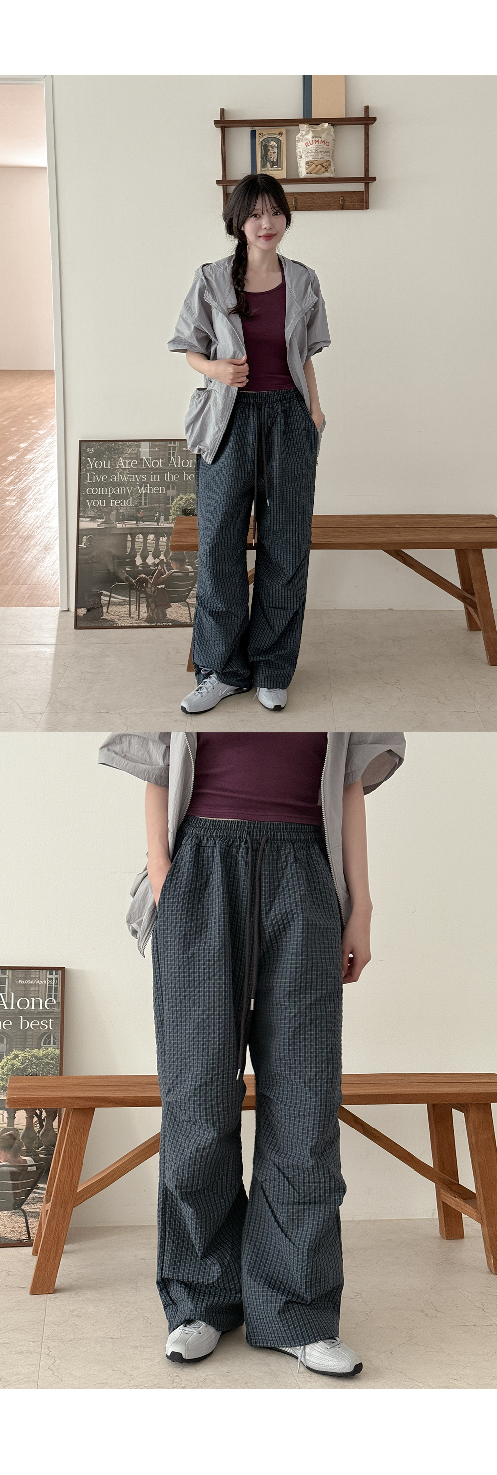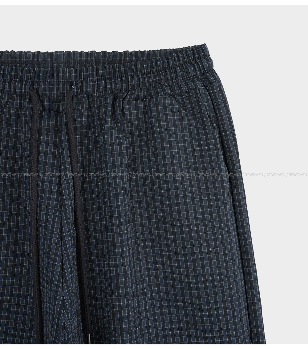 링퀴 鬆緊腰 格紋 寬 바스락 褲 87499