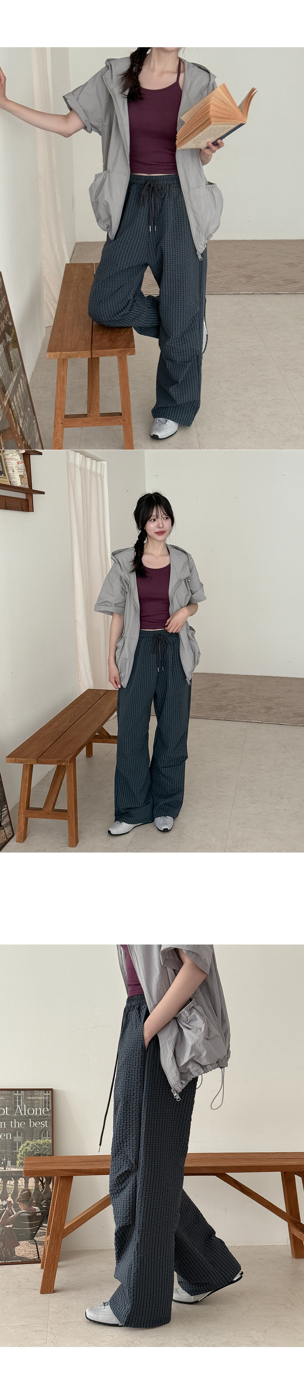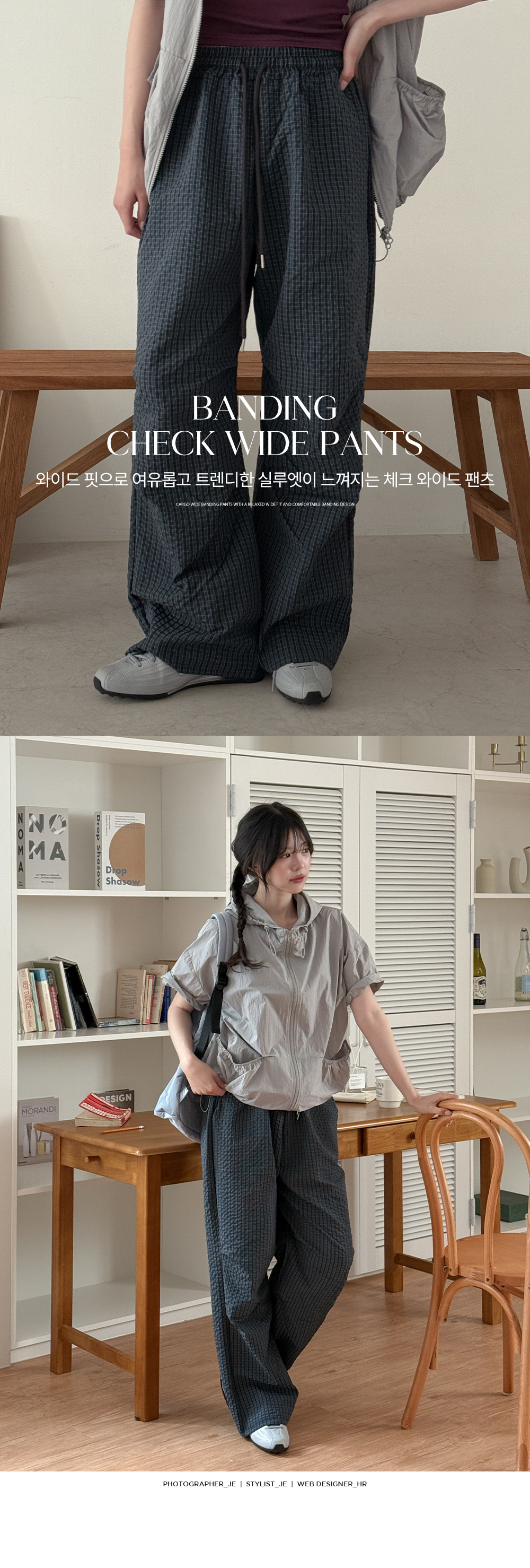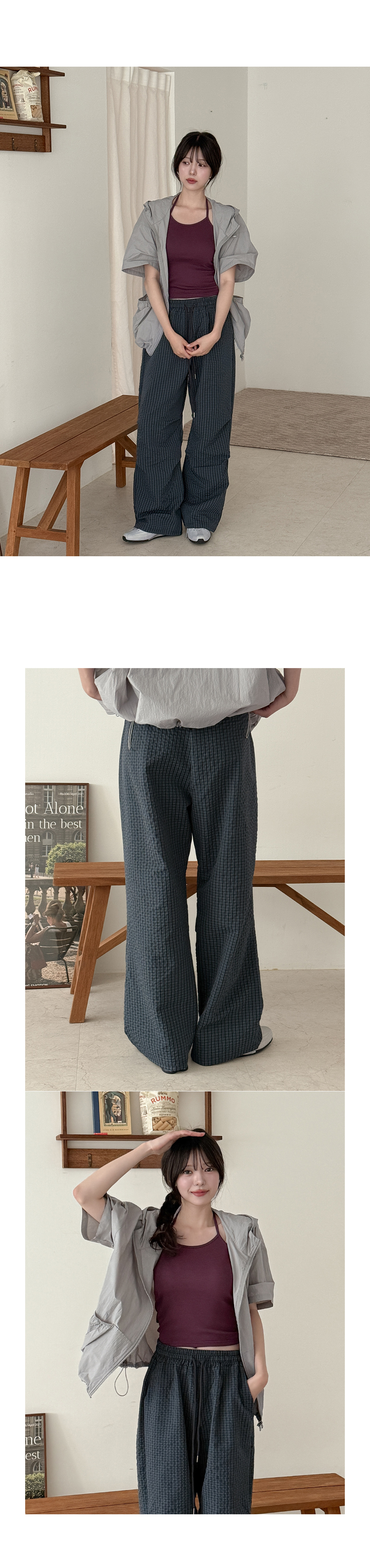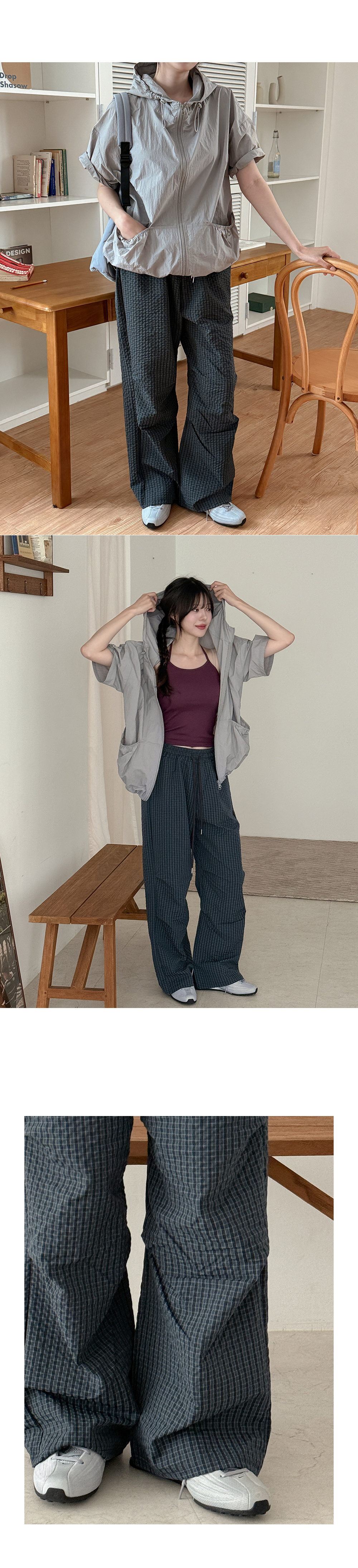 링퀴 鬆緊腰 格紋 寬 바스락 褲 87499