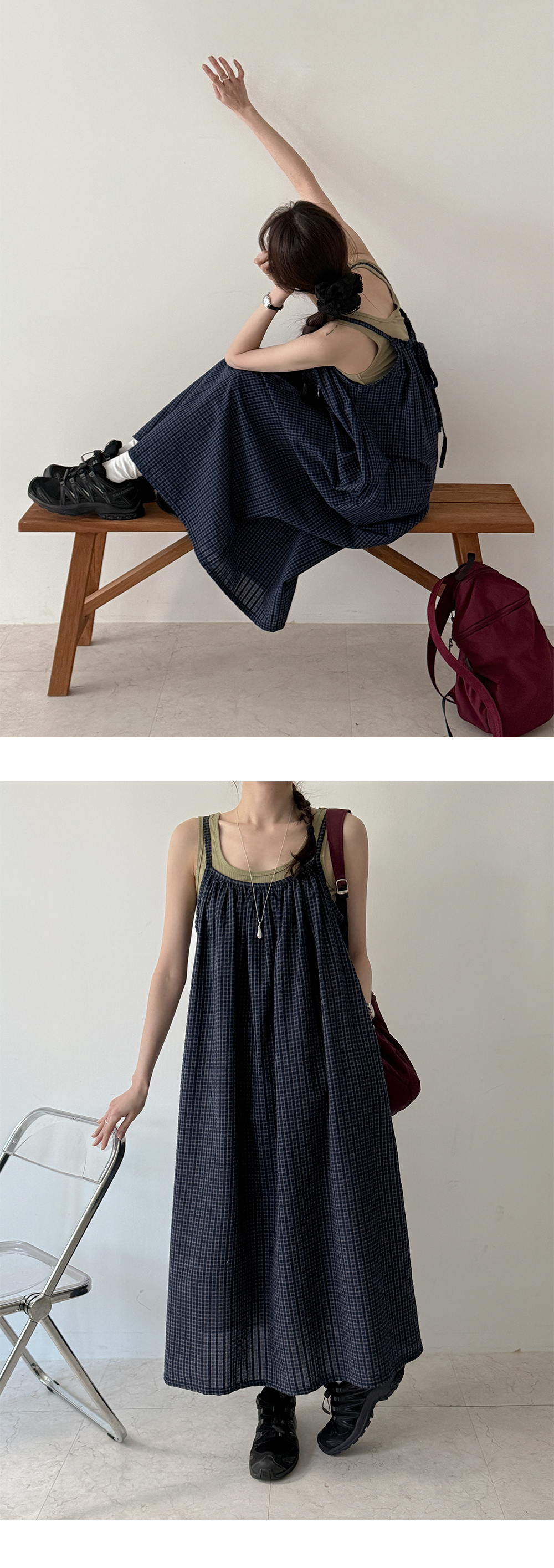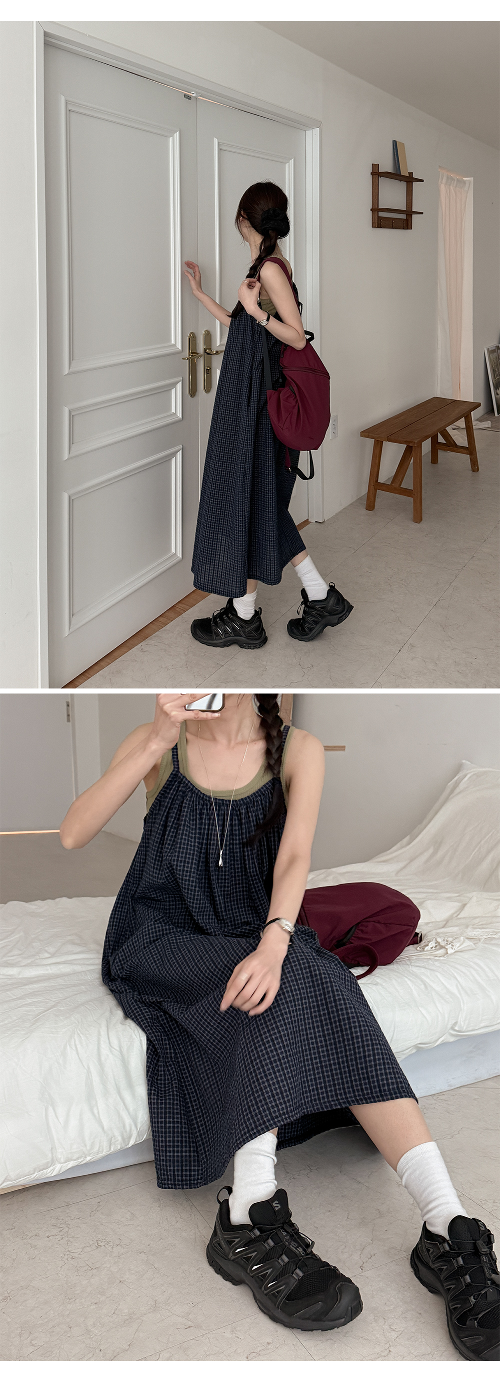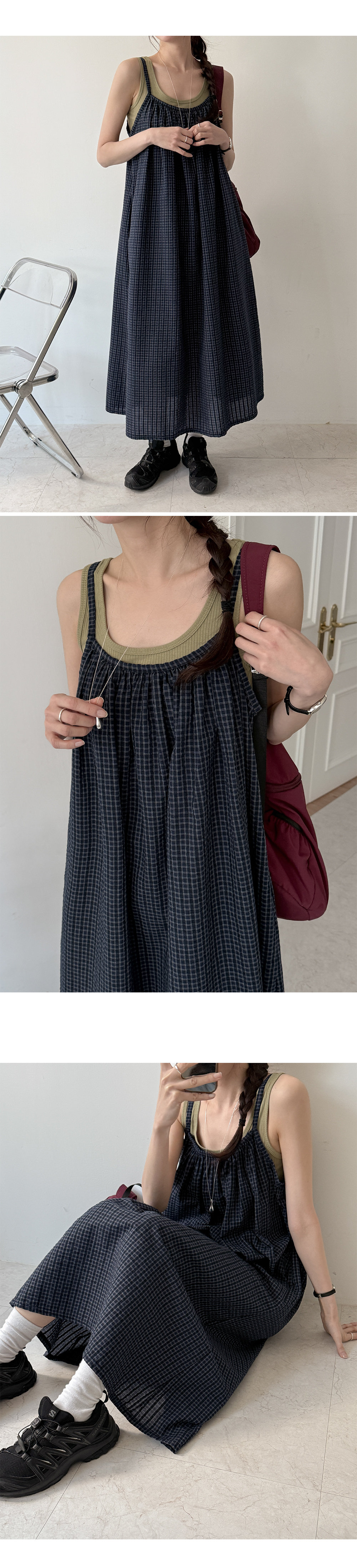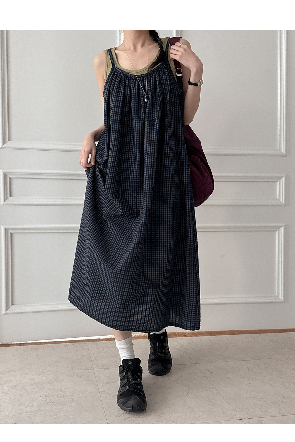 릴렉스 체크패턴 포켓 背心 長款 洋裝 87569