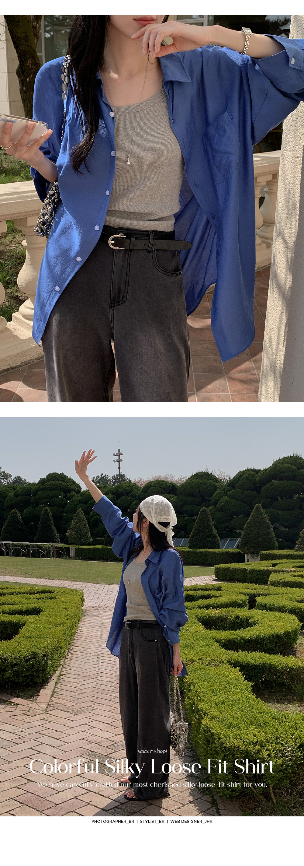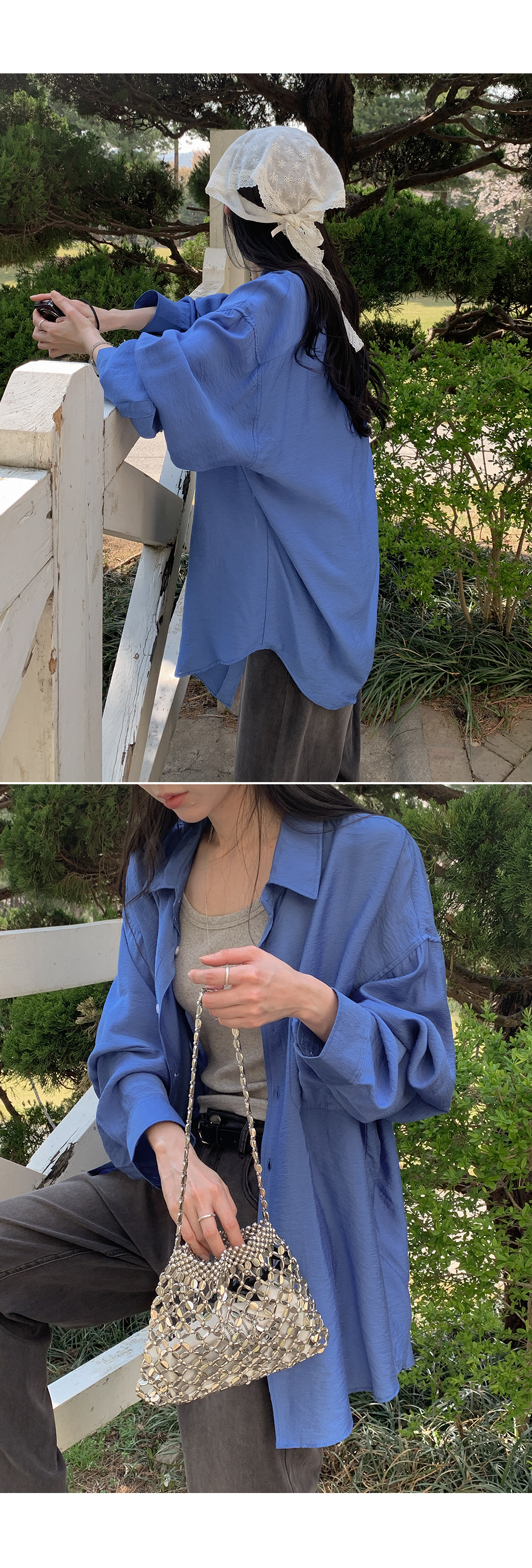 오로라 顏色 실키 寬鬆 襯衫 87634