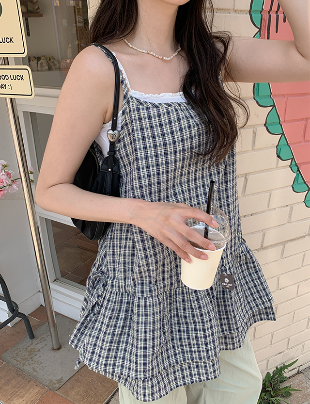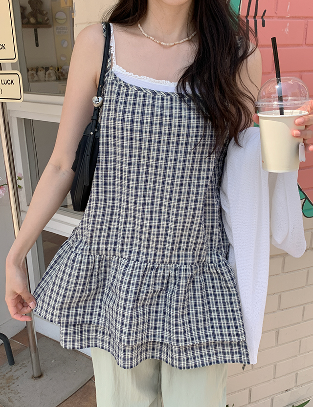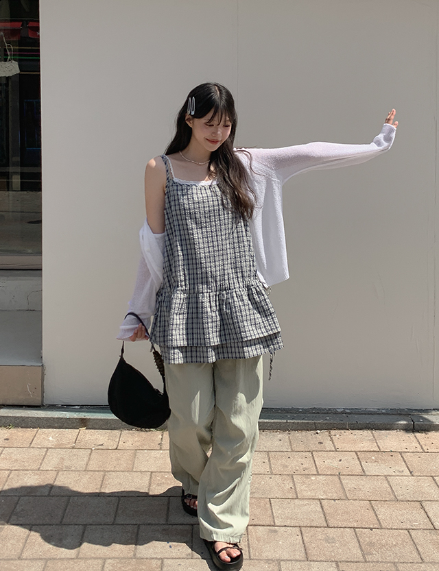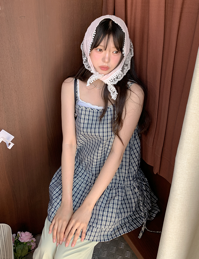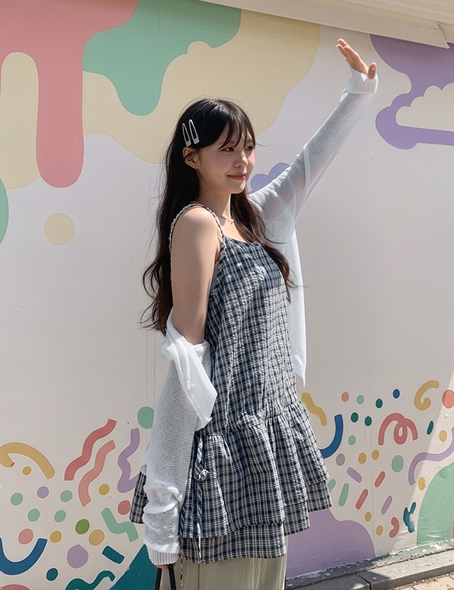잔잔한 체크 패턴의 슬리브리스를 소개할게요.