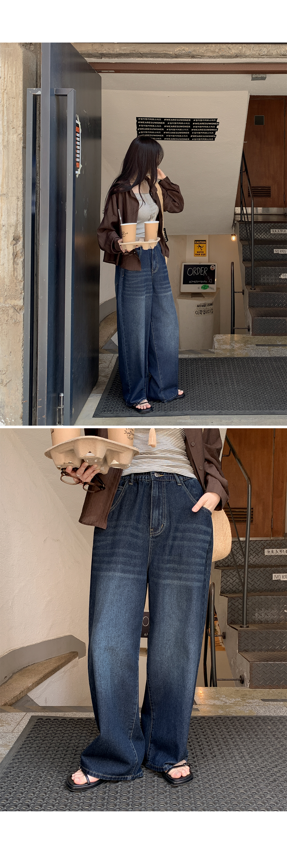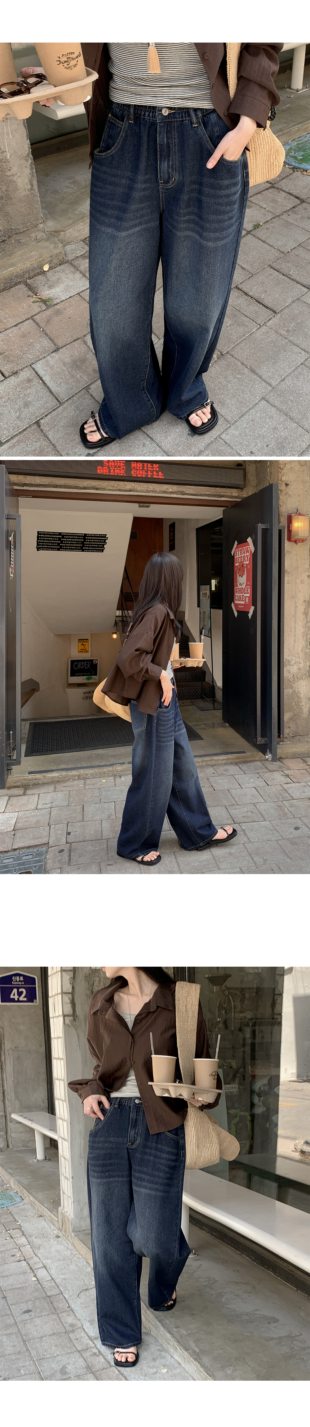 넉넉하게 떨어지는 와이드핏은 하체 라인을
