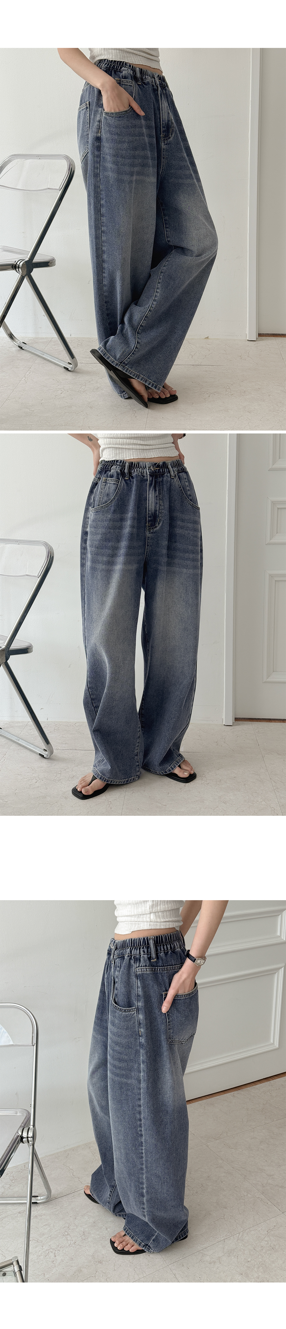 Banding Wide Denim Pants