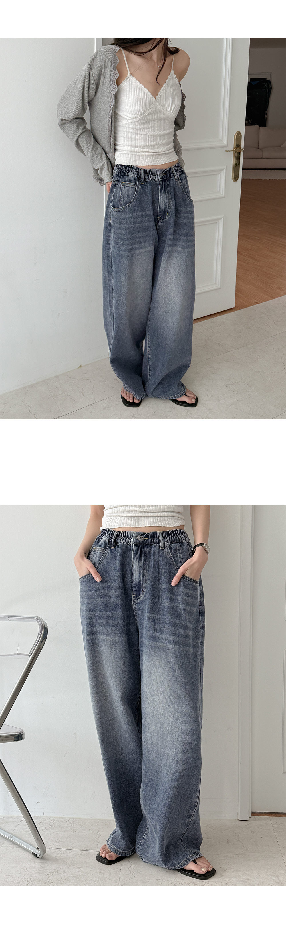 썸머데일리 鬆緊腰 寬 牛仔 褲 87604