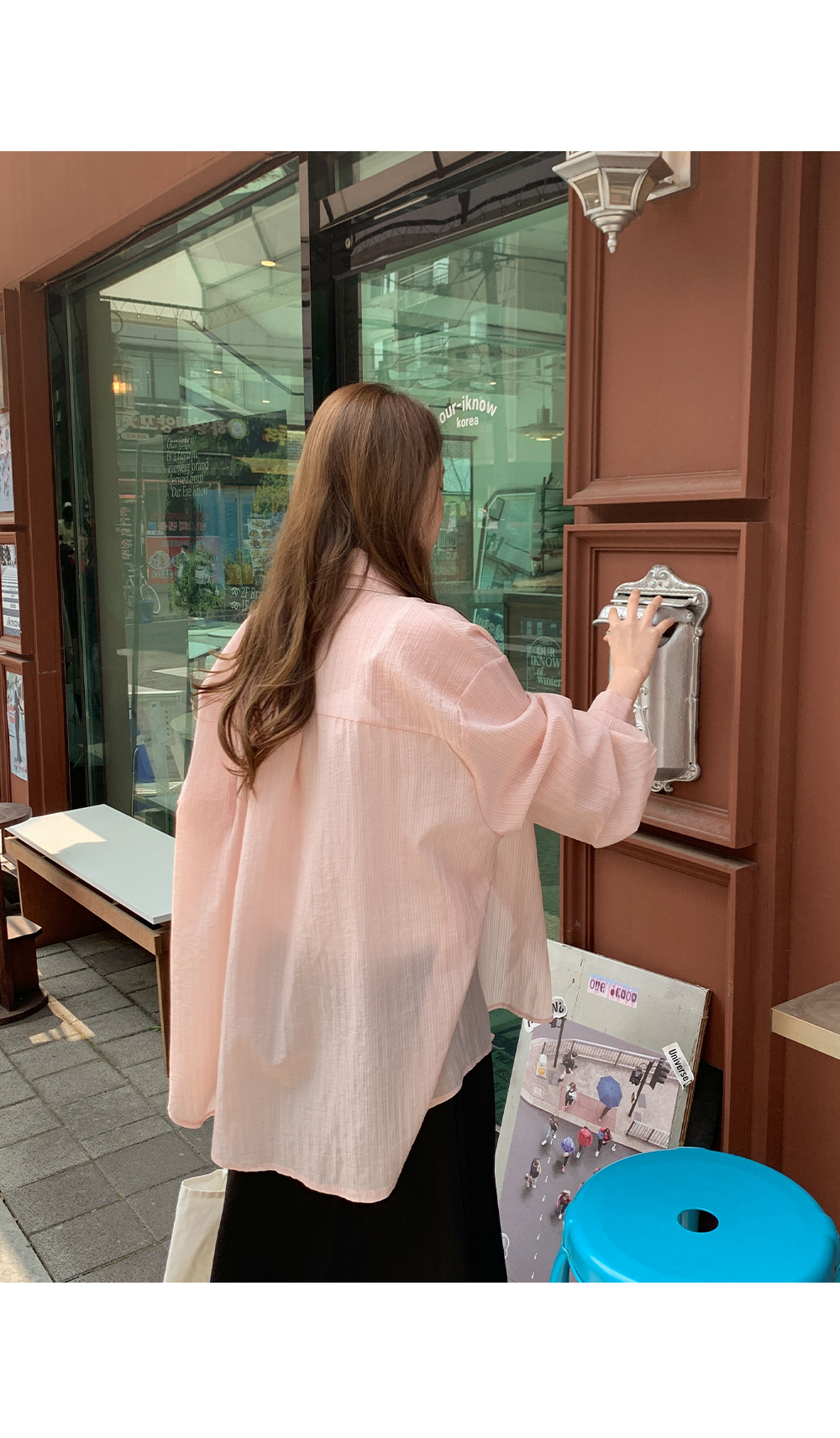 엘츄 寬鬆 스프링 夏季款 條紋 襯衫 87317