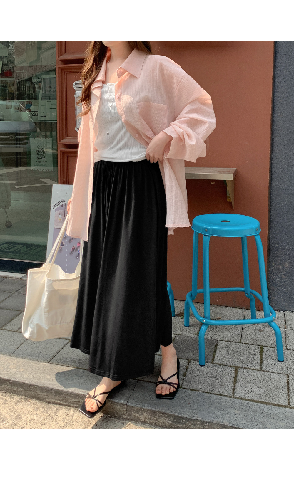 • [特價20%] 찰랑쿨 鬆緊腰 波浪群/喇叭裙 長裙 75184
