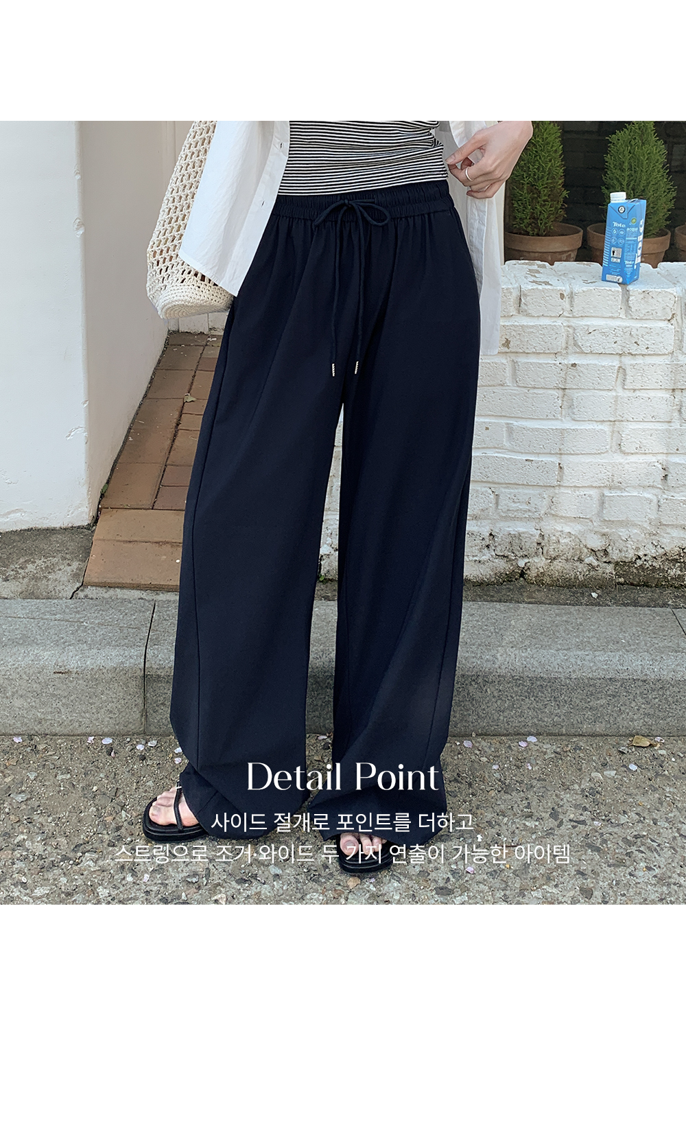 - 스트링 디테일로 조거와 와이드 두 가지 연출 가능