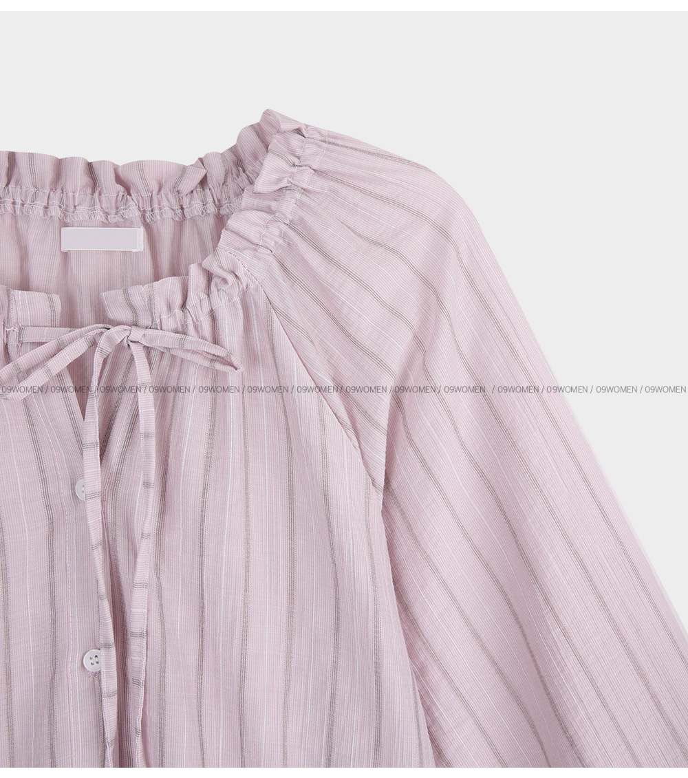 카우린 條紋 넥 鞋帶 襯衫 87841