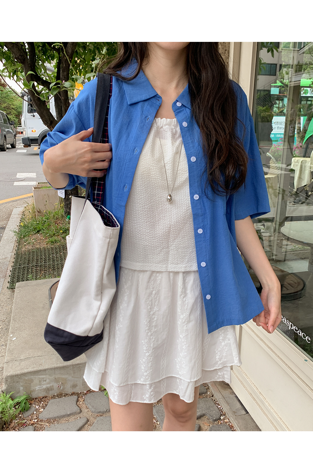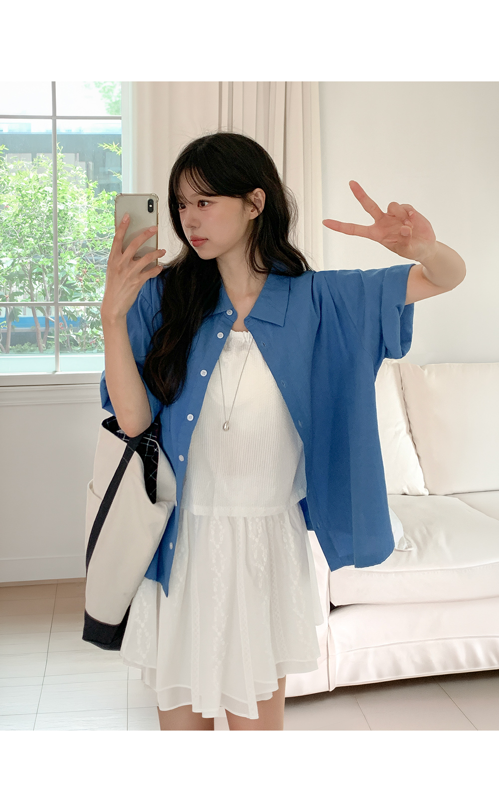 컬러피크닉 寬鬆 短袖 襯衫 87603