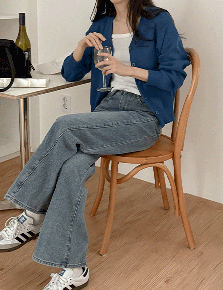 [2가지기장] 플리 사이드 절개 세미 寬 牛仔 褲 86033