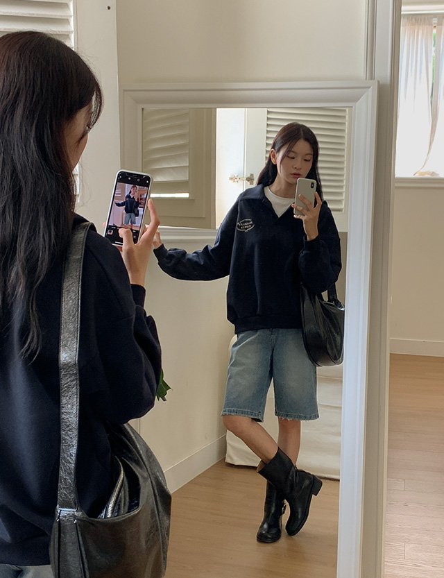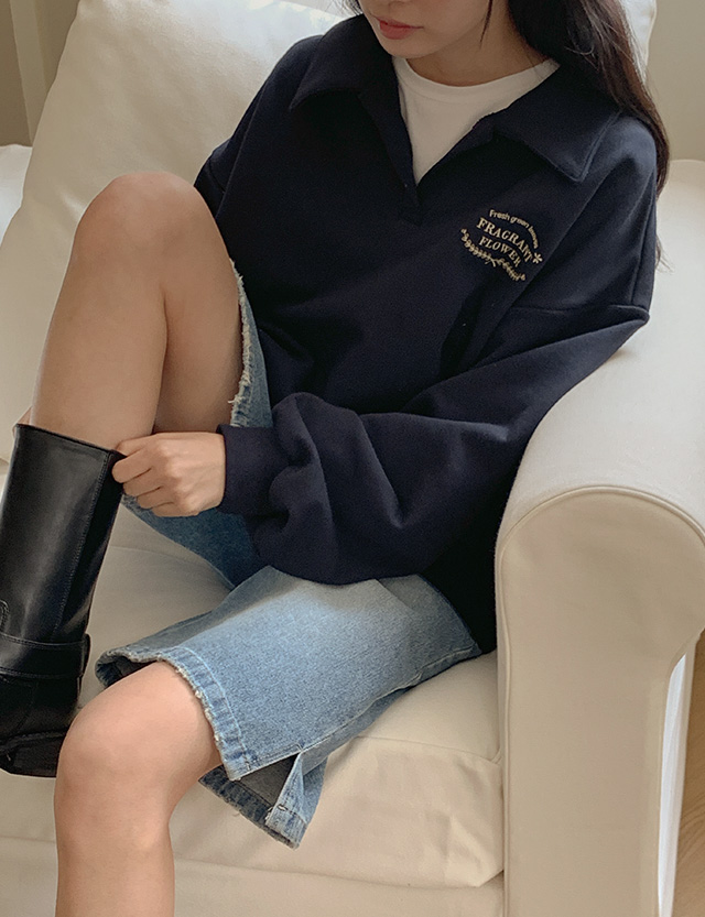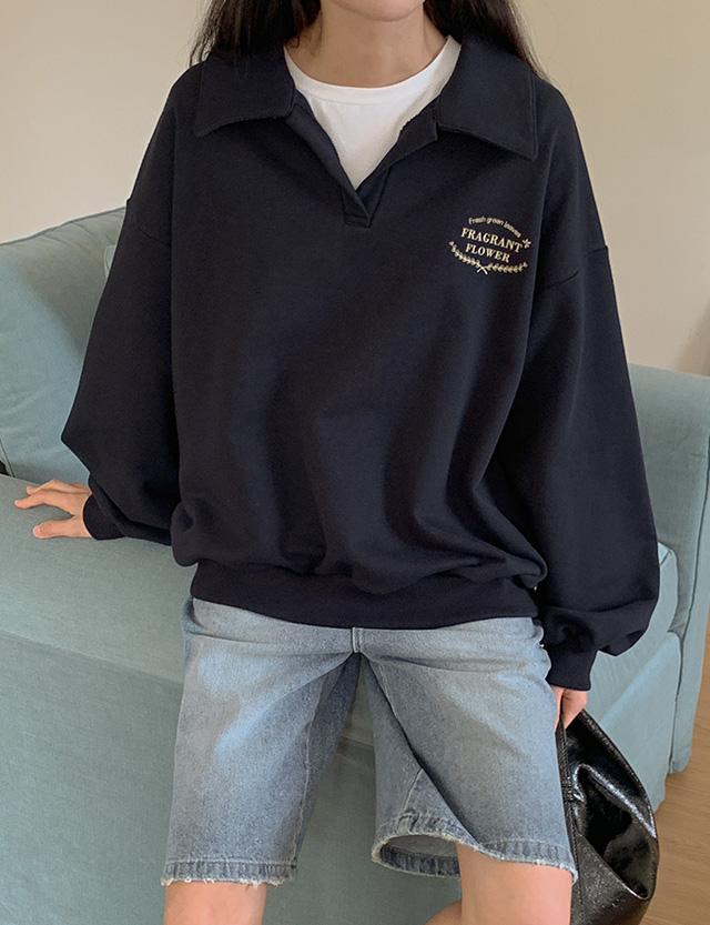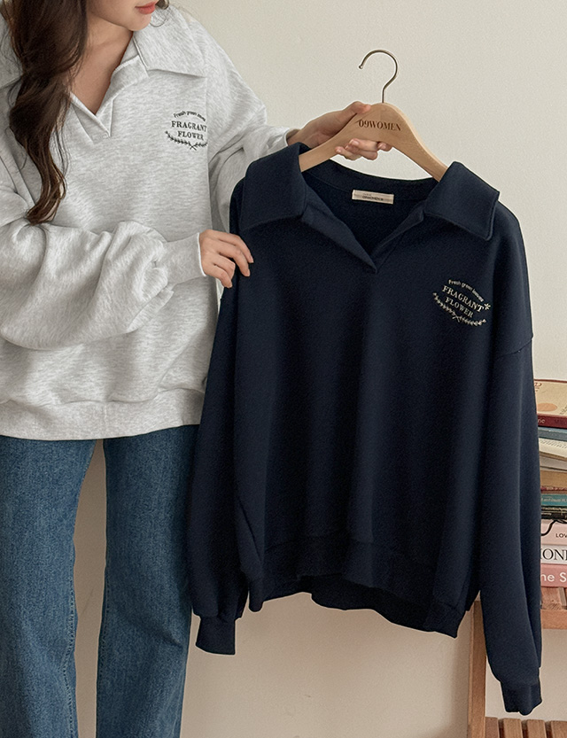 [1천장 돌파] 레브리 寬鬆 刺繡 領口 運動衫 73750