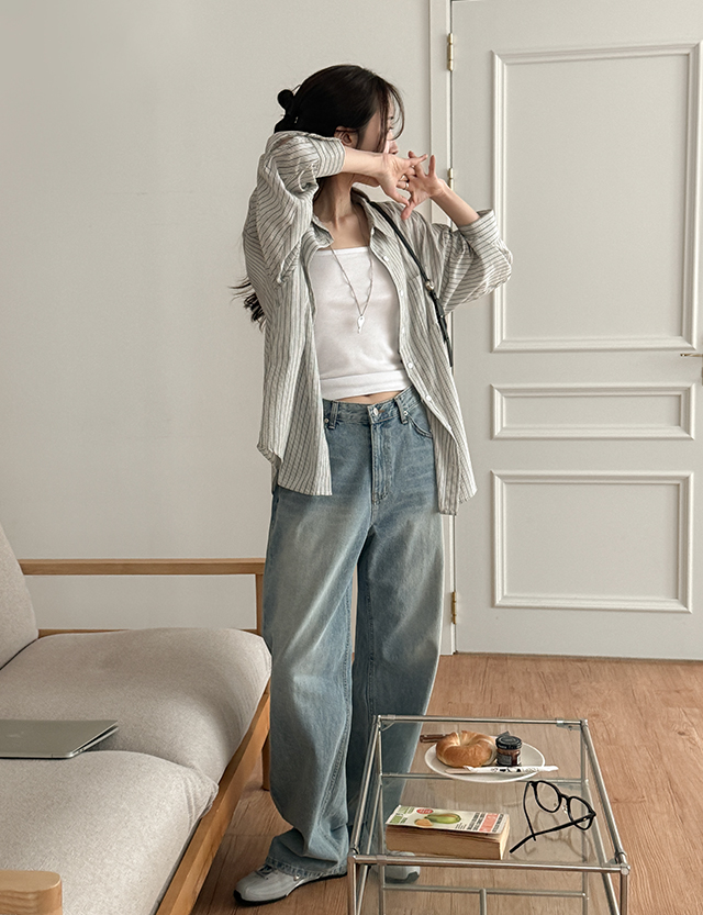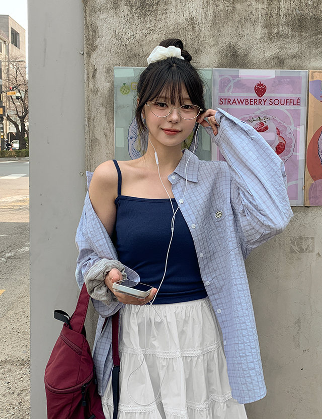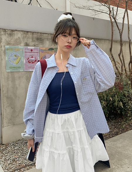 봄봄산뜻한 寬鬆 格紋 襯衫 87127