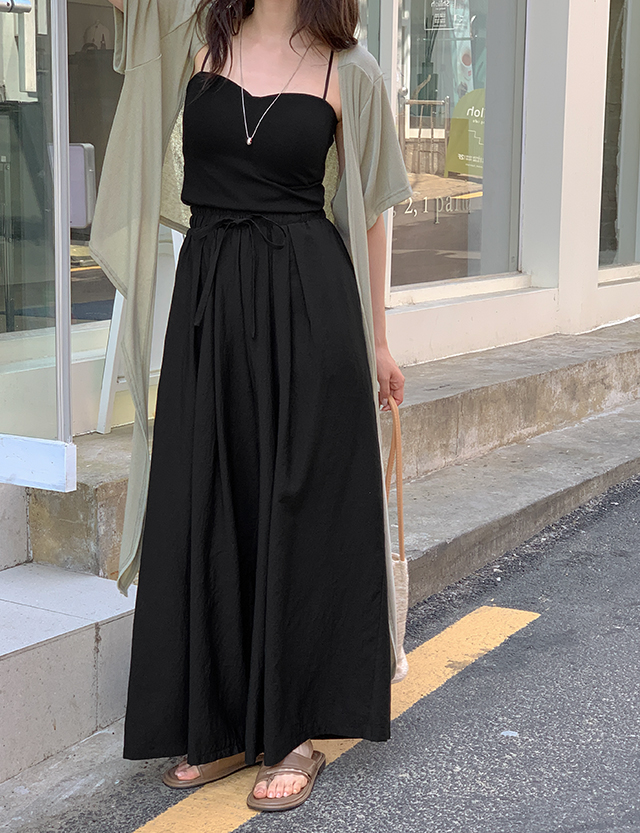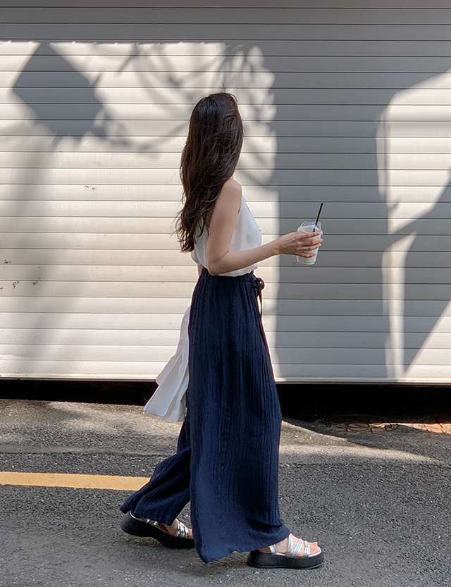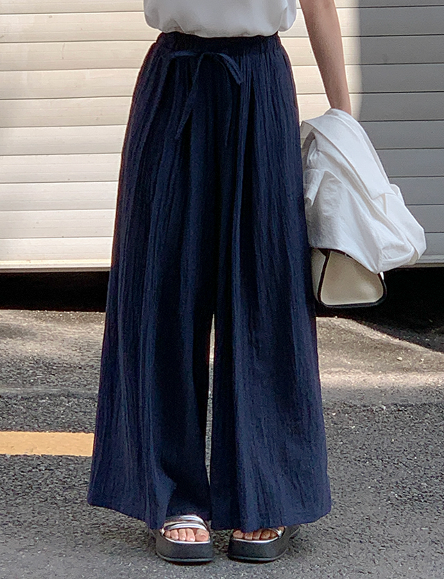 鬆緊腰綁帶寬褲 75754