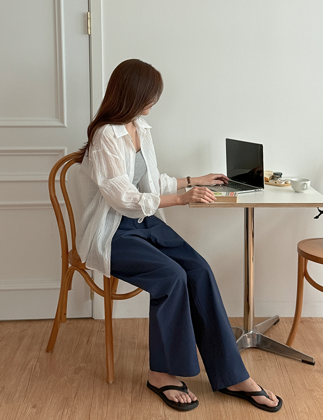 鬆緊腰棉質寬褲 75893