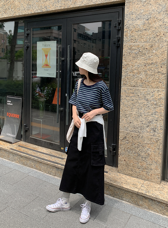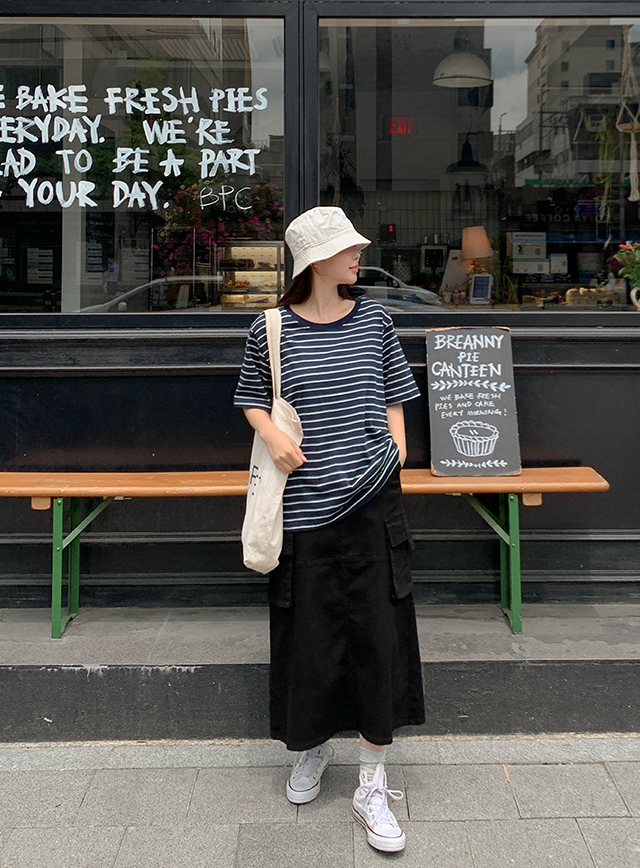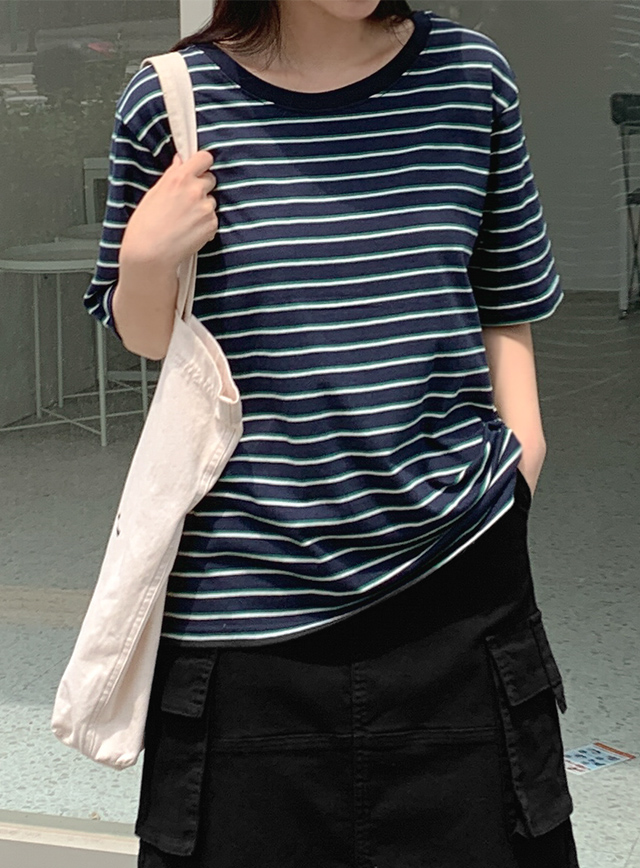 配色條紋短袖T恤 76915