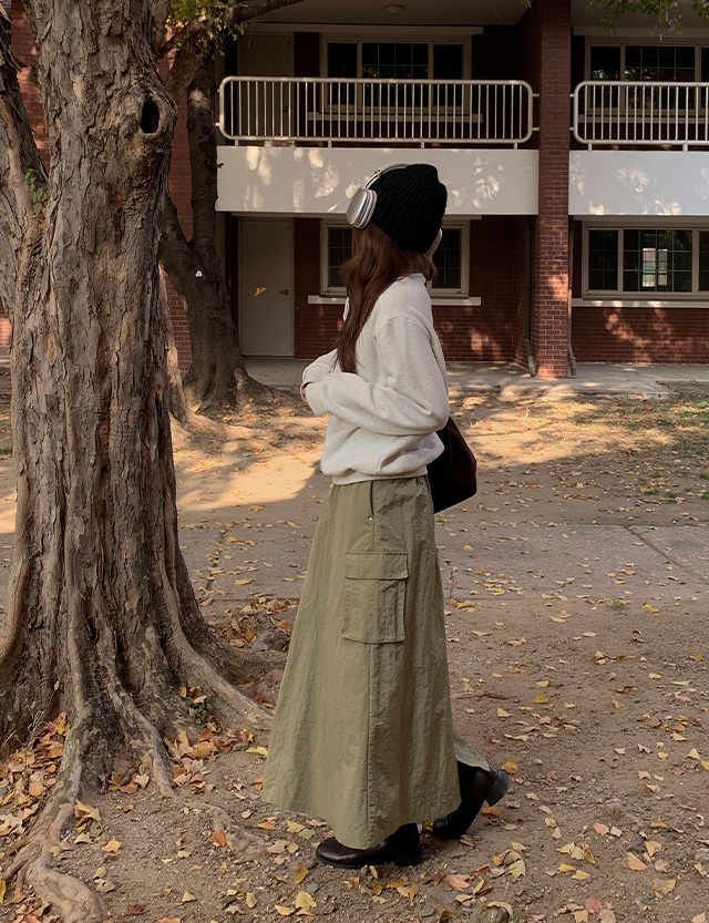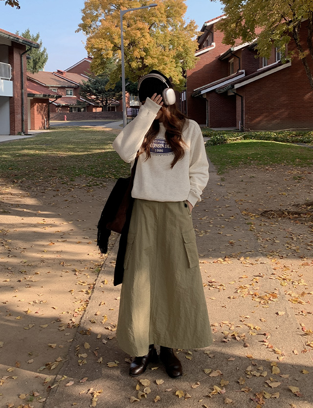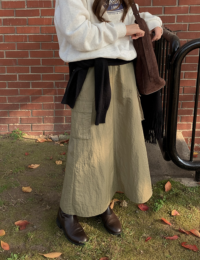 밀리아 A線條 工裝褲 鬆緊腰 長裙 78871