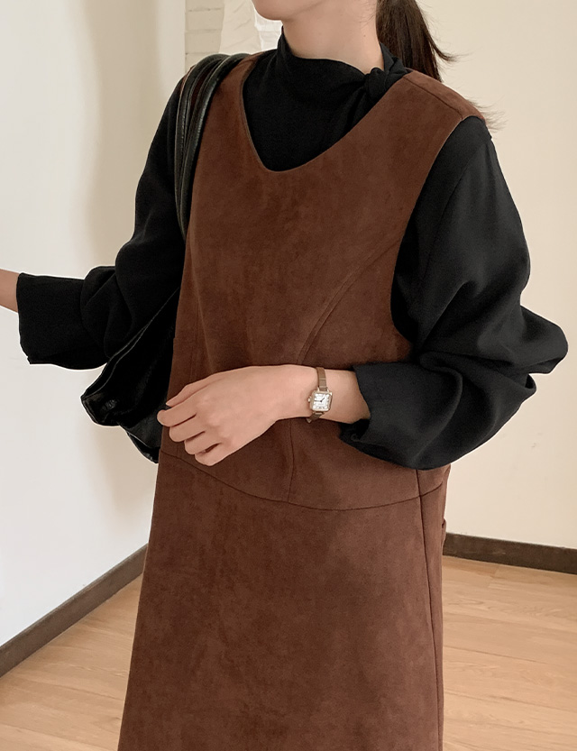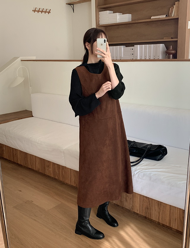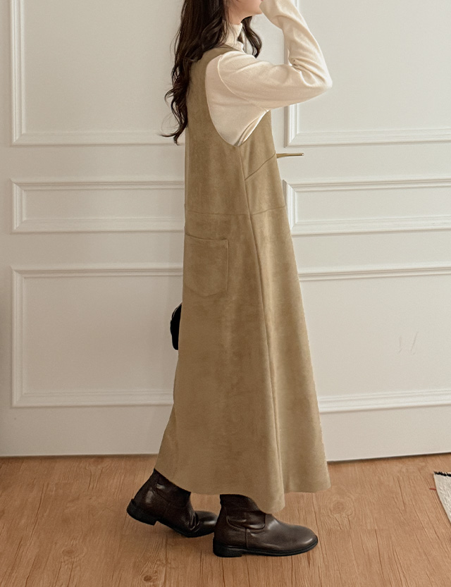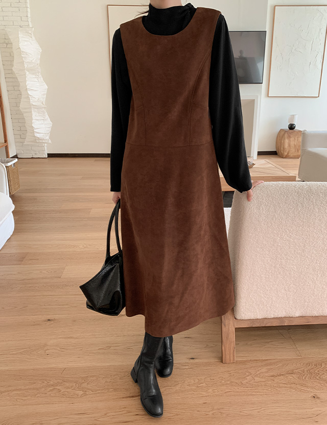 케나 翻毛皮 뷔스티에 長款 洋裝 79098
