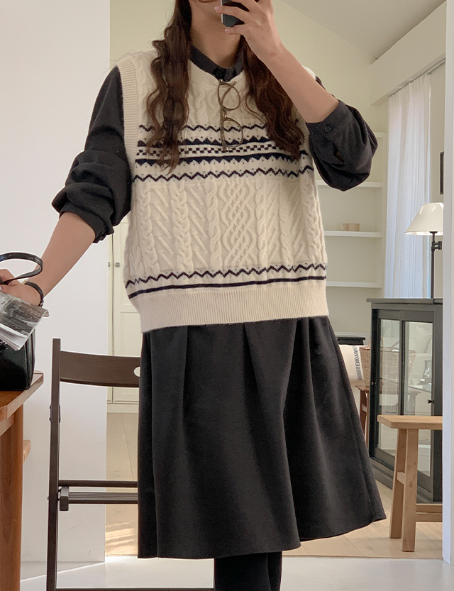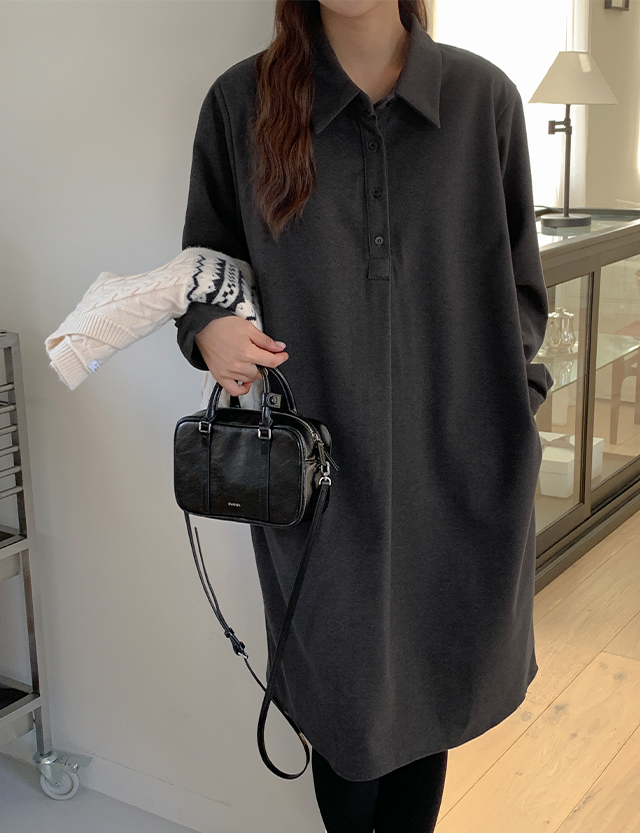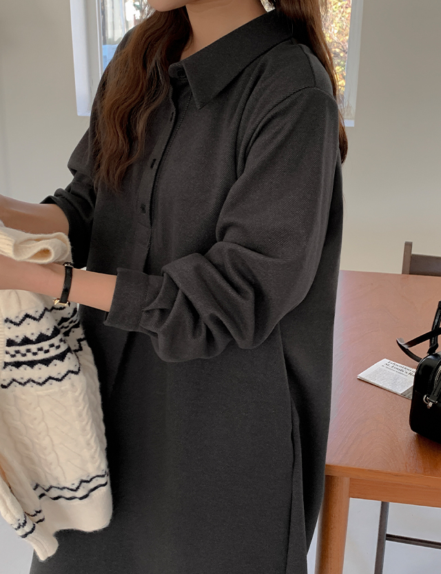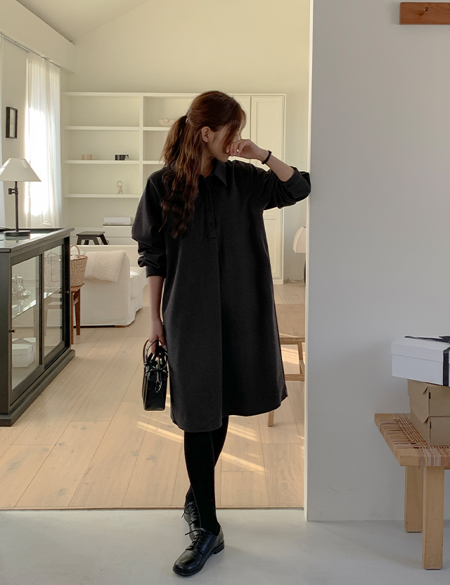 테디에 燈芯絨 領口 미디 洋裝 79323