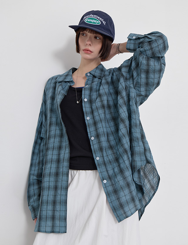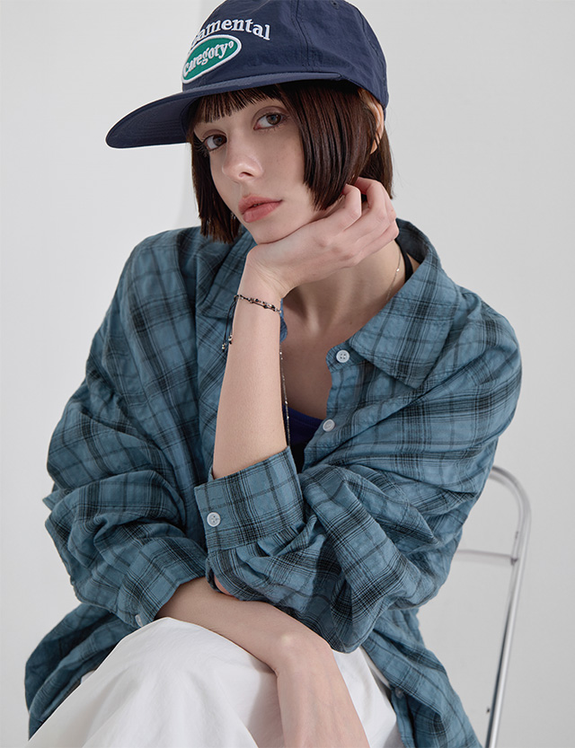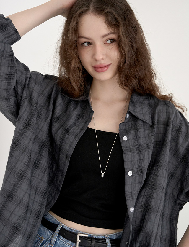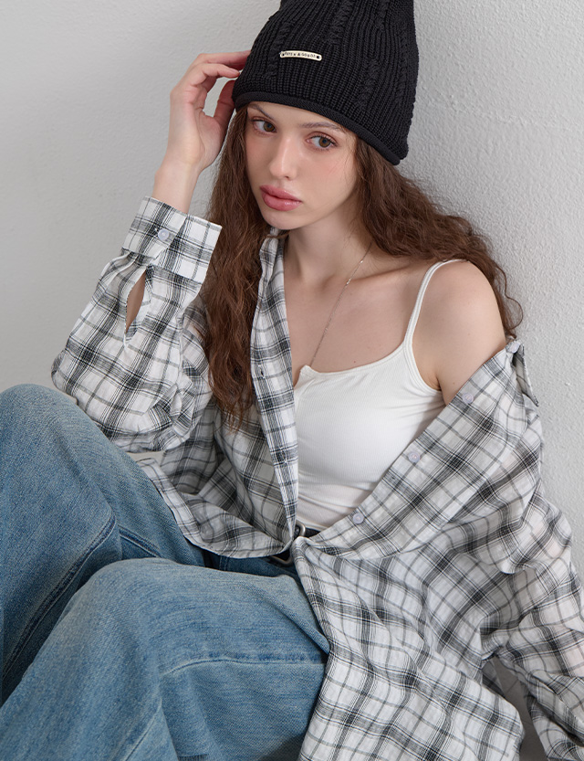 [短袖ver.加] 馬甲 리얼 寬鬆 格紋 襯衫 80864