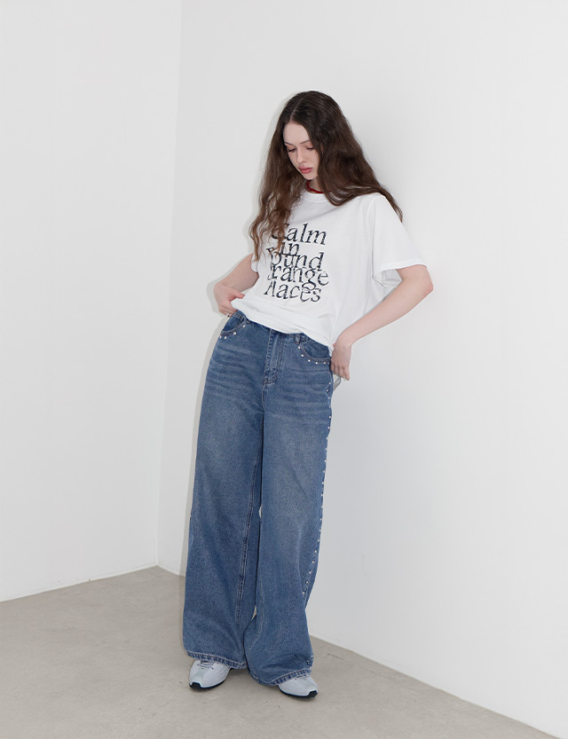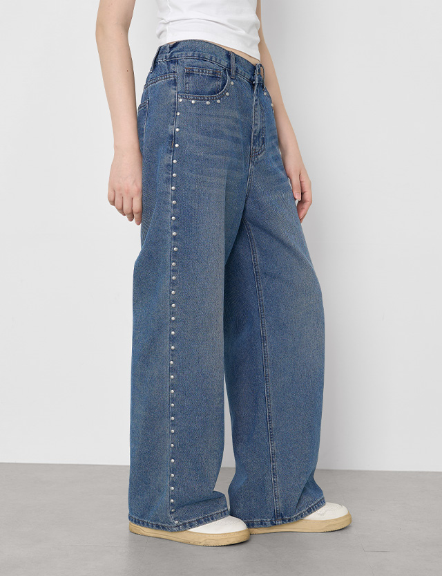 리포인 鬆緊腰 寬 牛仔 褲 81382