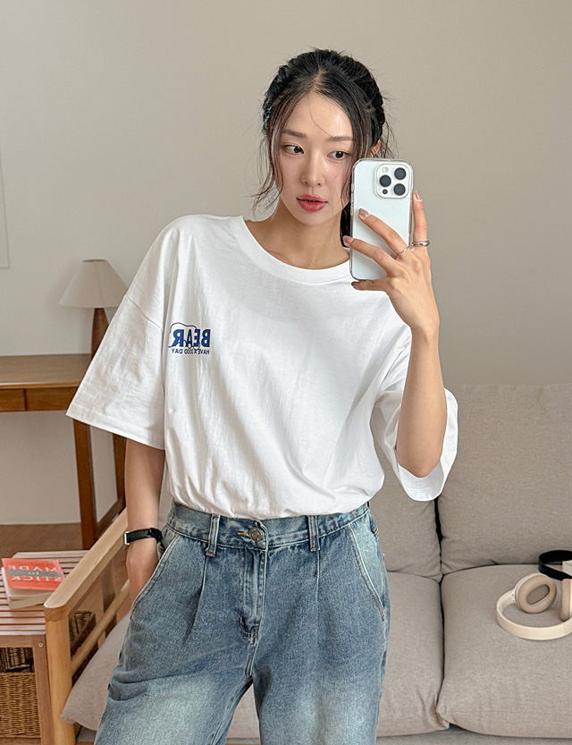 英尺 리얼루즈핏 標籤 印花 T恤 81774