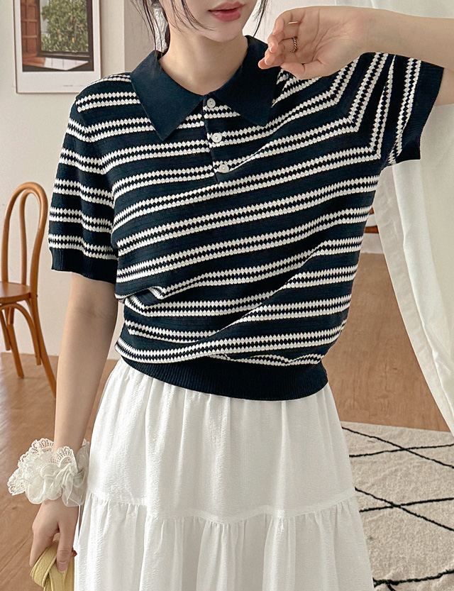 리므레 條紋 針織 Polo衫/保羅衫 82548