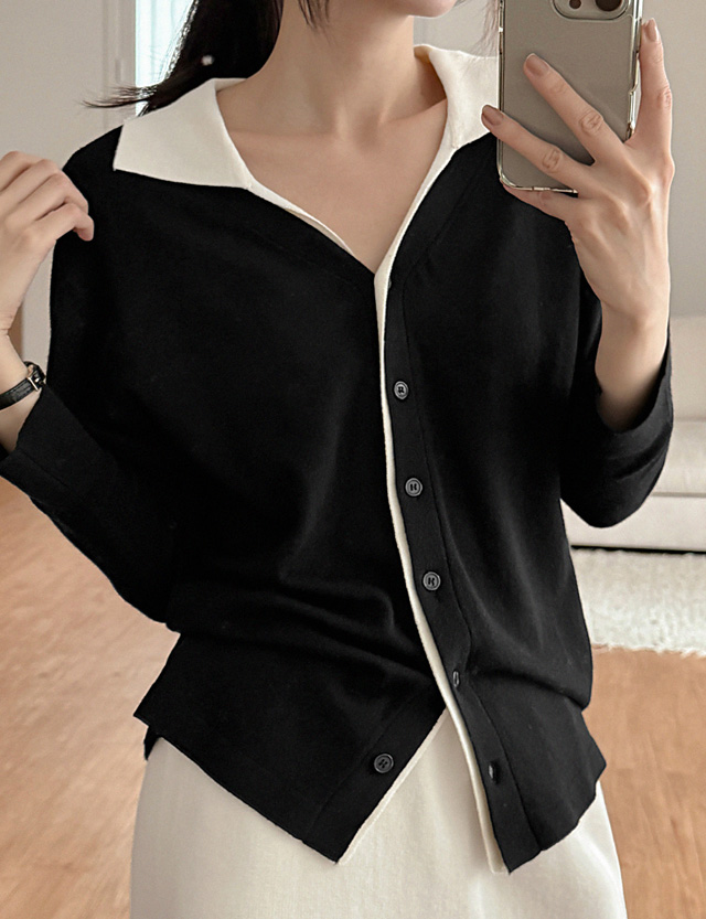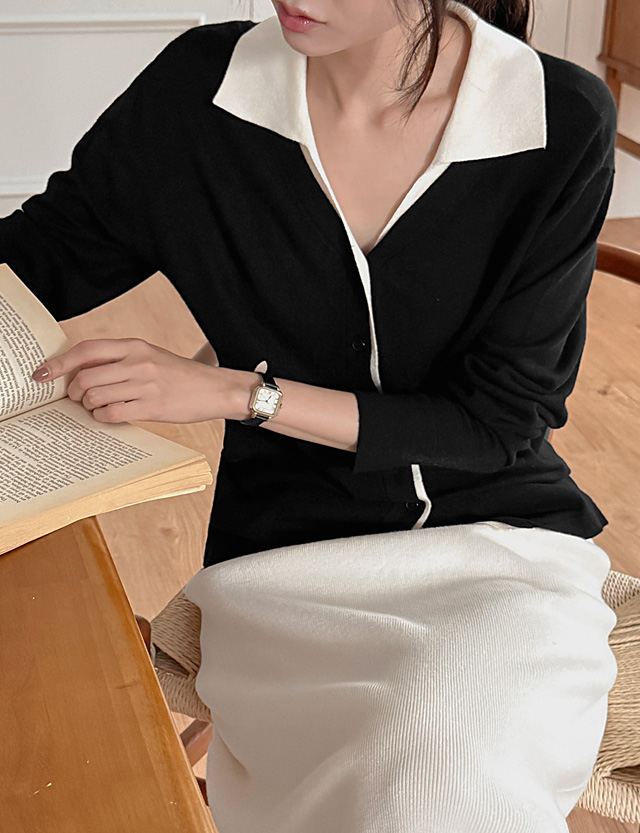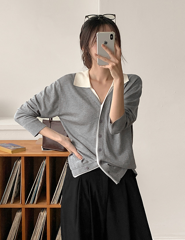 레일로 配色 領口 針織 開襟外套 83704