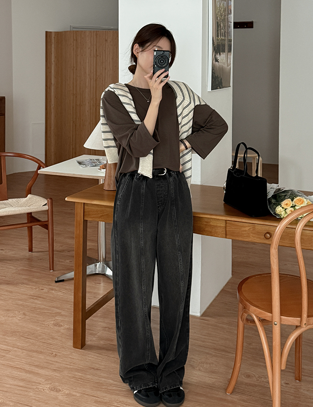 [09초이스] 나만입고싶은 寬鬆 羊毛 條紋 開襟外套 83807