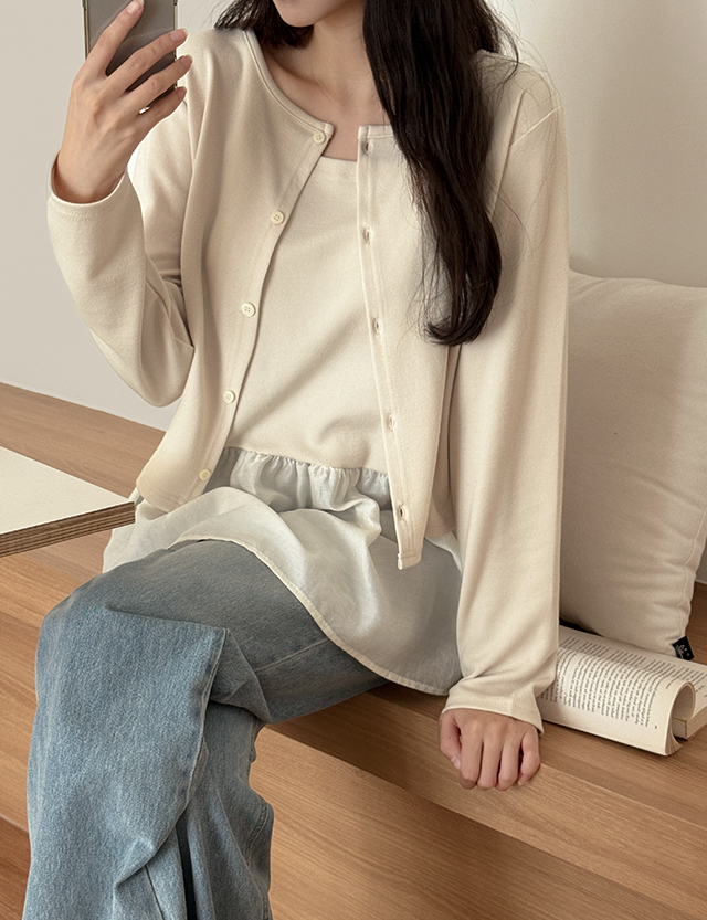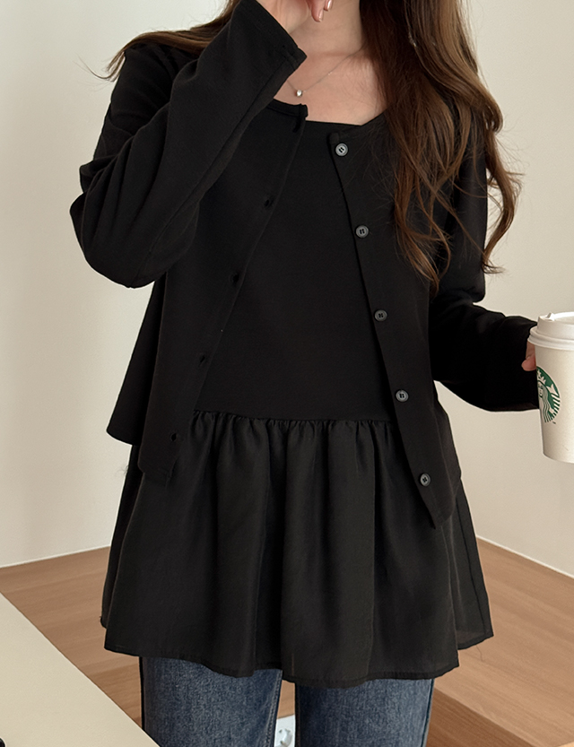 트랄라 開襟外套 & 배색나시 套裝 83958