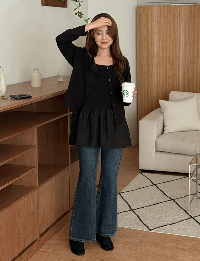 [2가지기장] 포리트 세미 寬 喇叭 牛仔 褲 83941