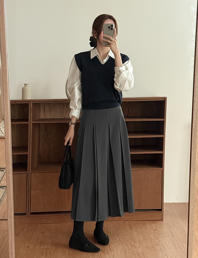 에나 雙 百褶 鬆緊腰 長裙 84083