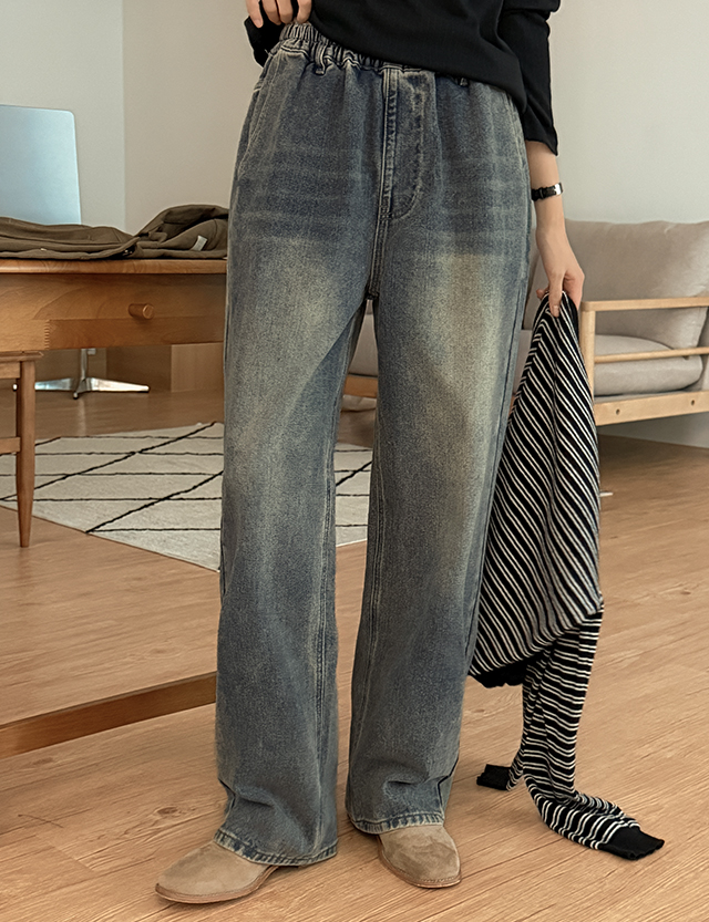 [特價20%][40까지]딱 내가 원한 세미와이드 전체밴딩 牛仔 褲 84144
