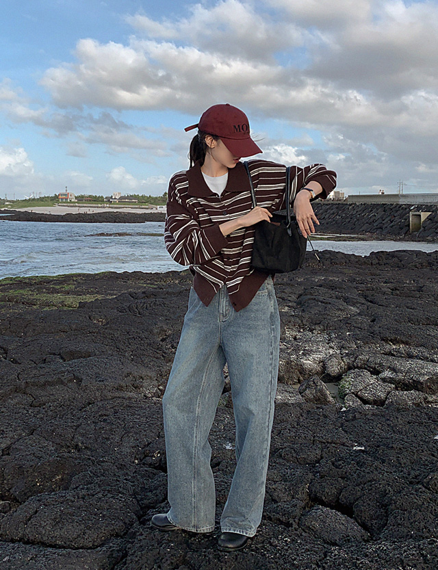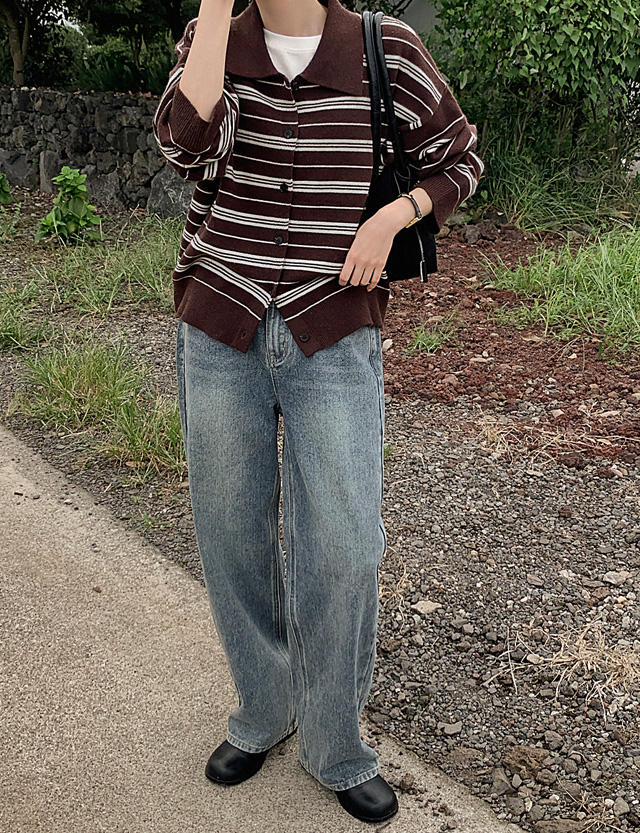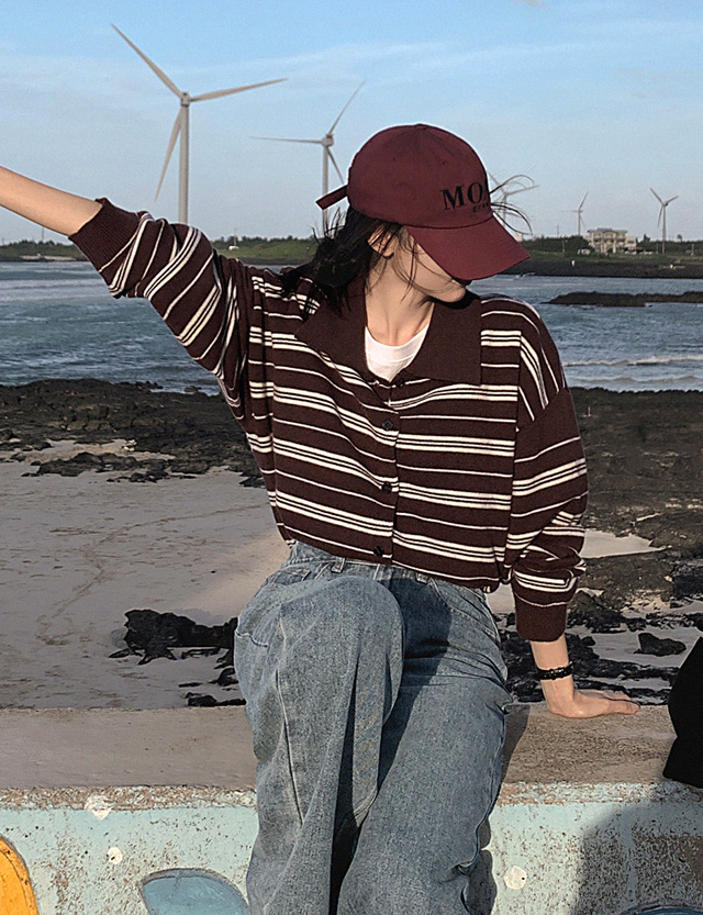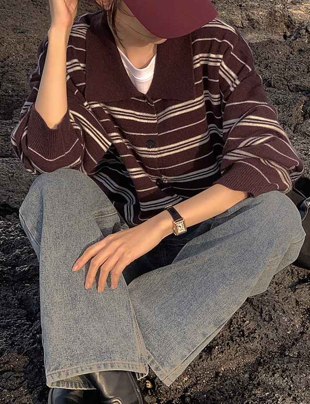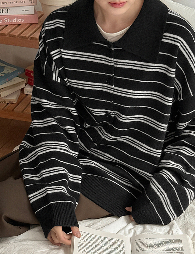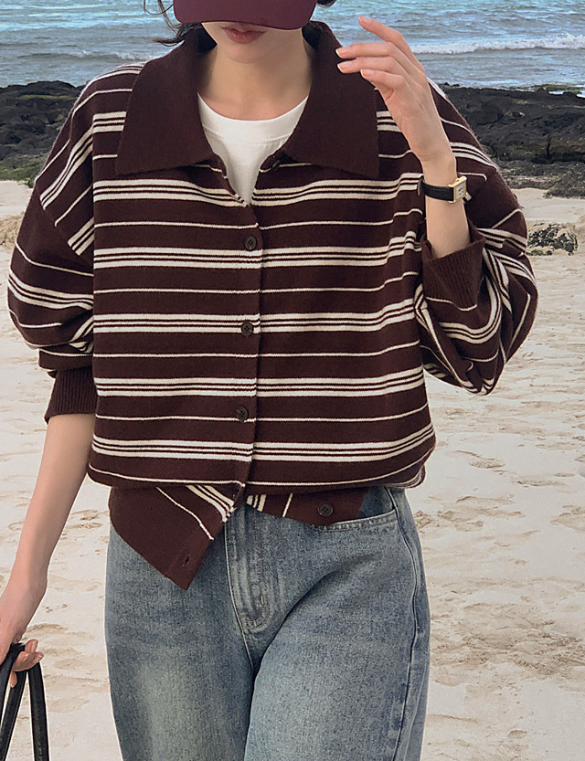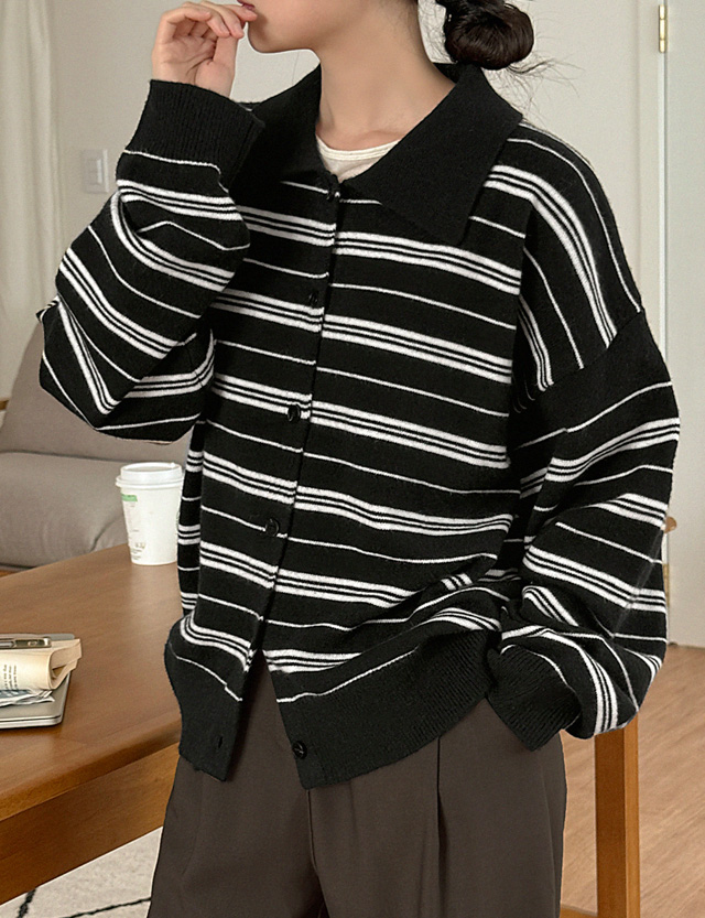 잇피 條紋 領口 針織 開襟外套 84183