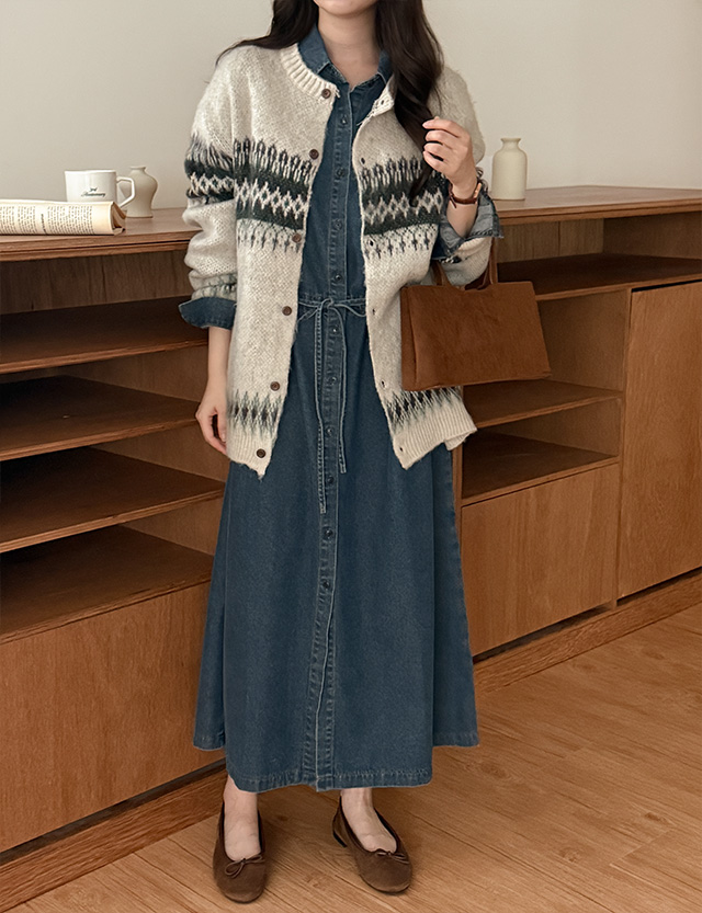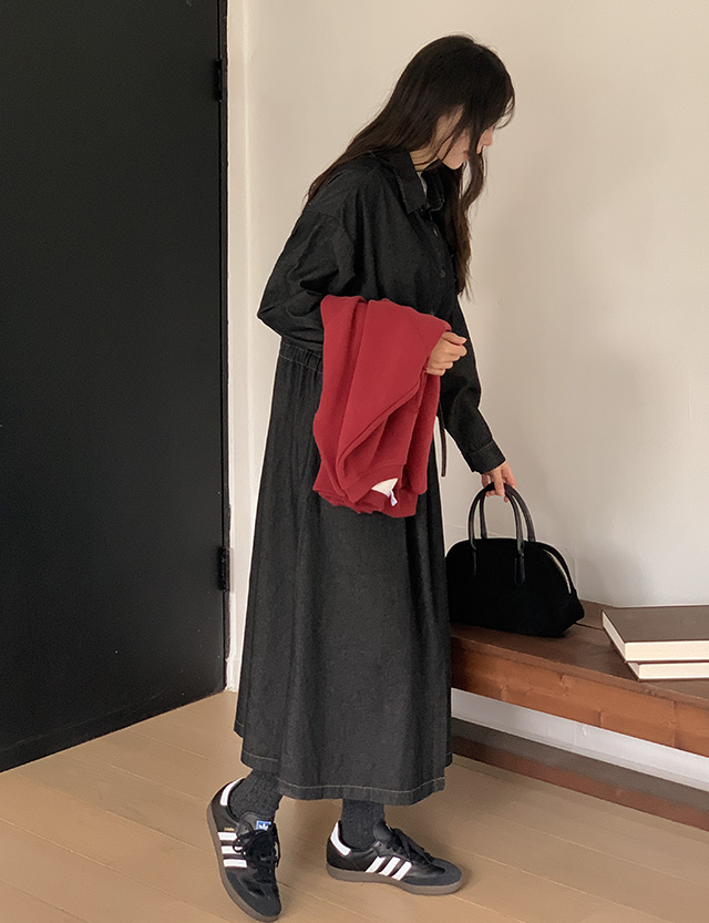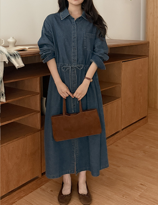 웨스틴 寬鬆 牛仔 長款 洋裝 84326