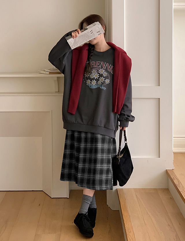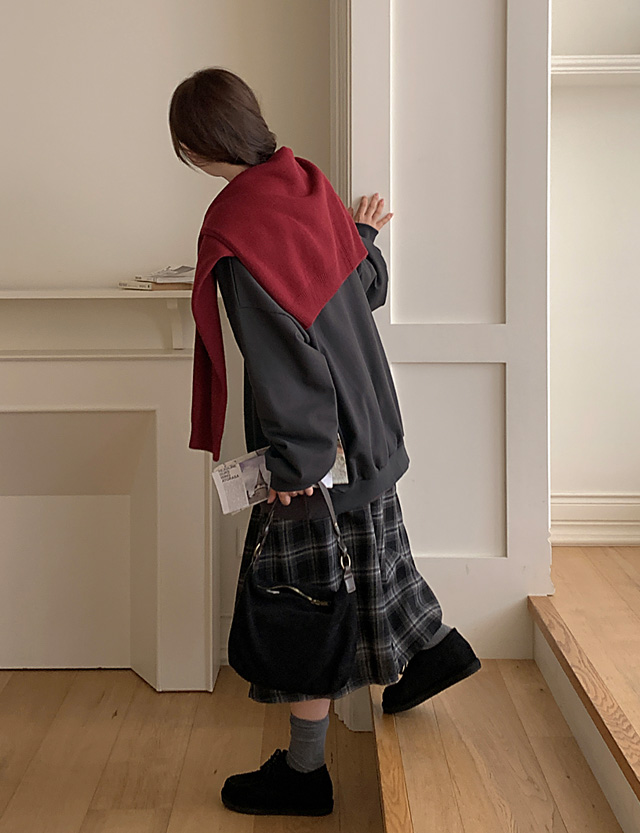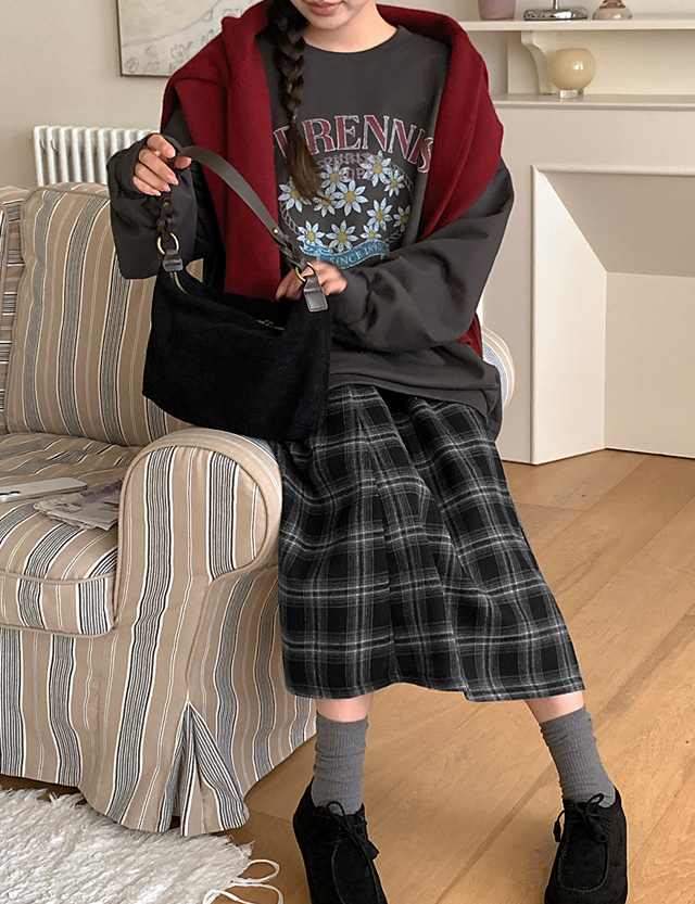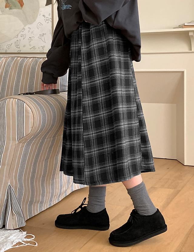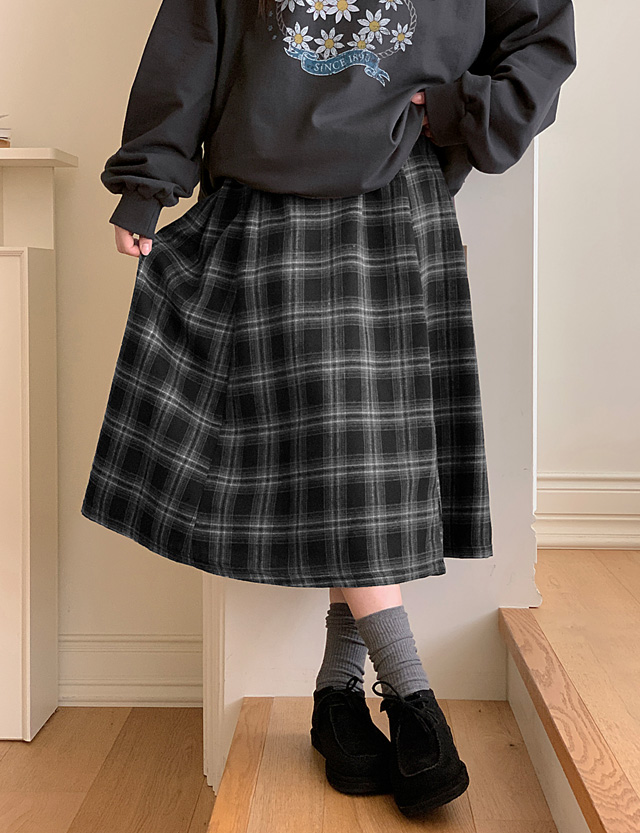 메인븐 鬆緊腰 格紋 미디 裙 84212