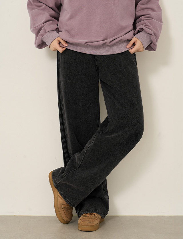 키샤 鬆緊腰 흑청 寬 트랙 牛仔 褲 84373