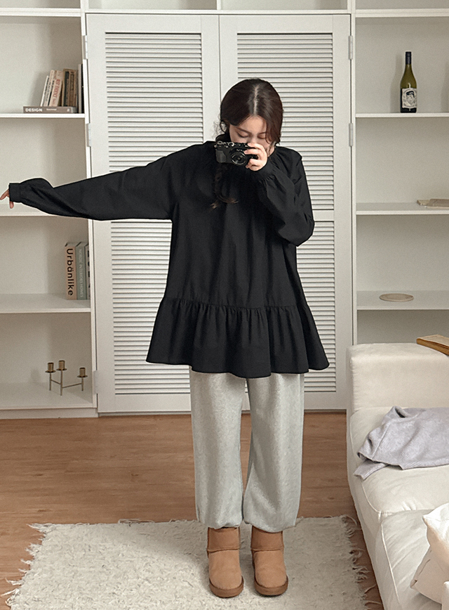 페이니 圓領 分層 皺摺 襯衫 83775