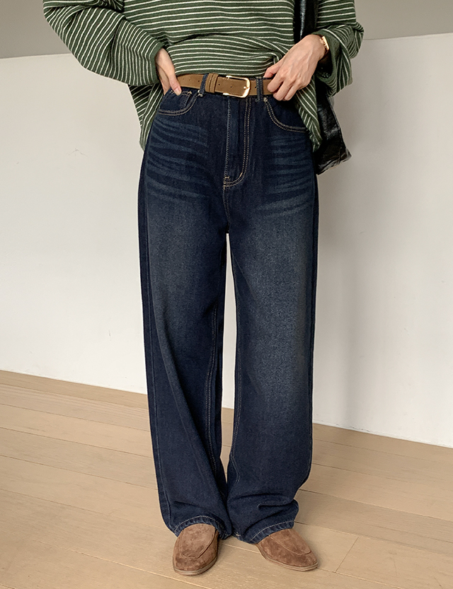 다인디 復古/仿舊 深 牛仔 褲 84360