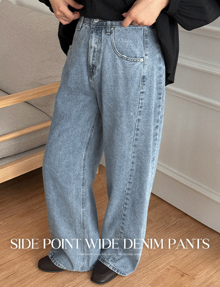 [3가지기장]메키오 사이드 절개 寬 牛仔 褲 84442