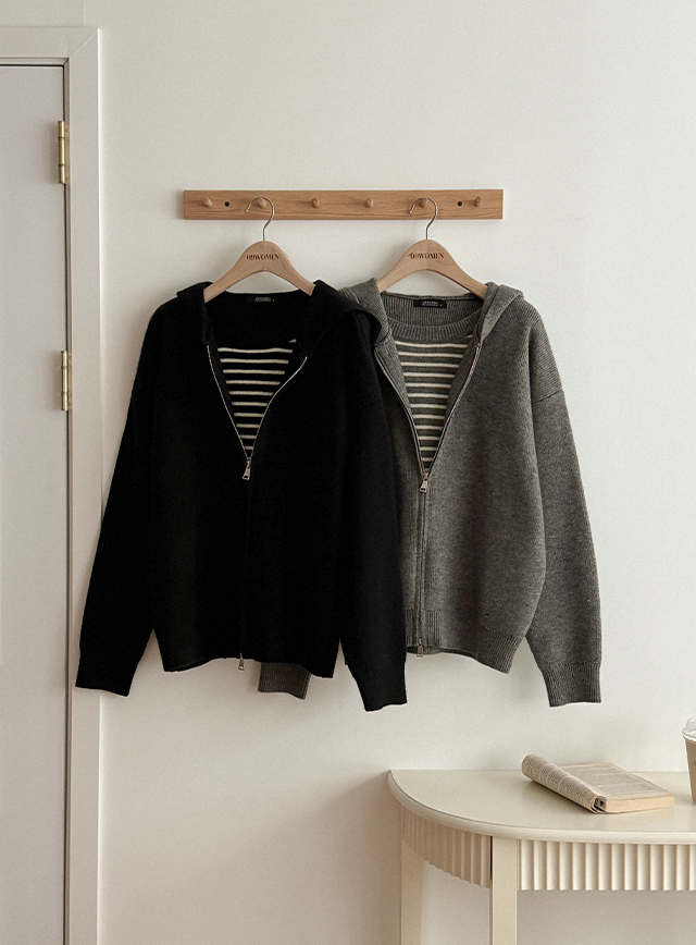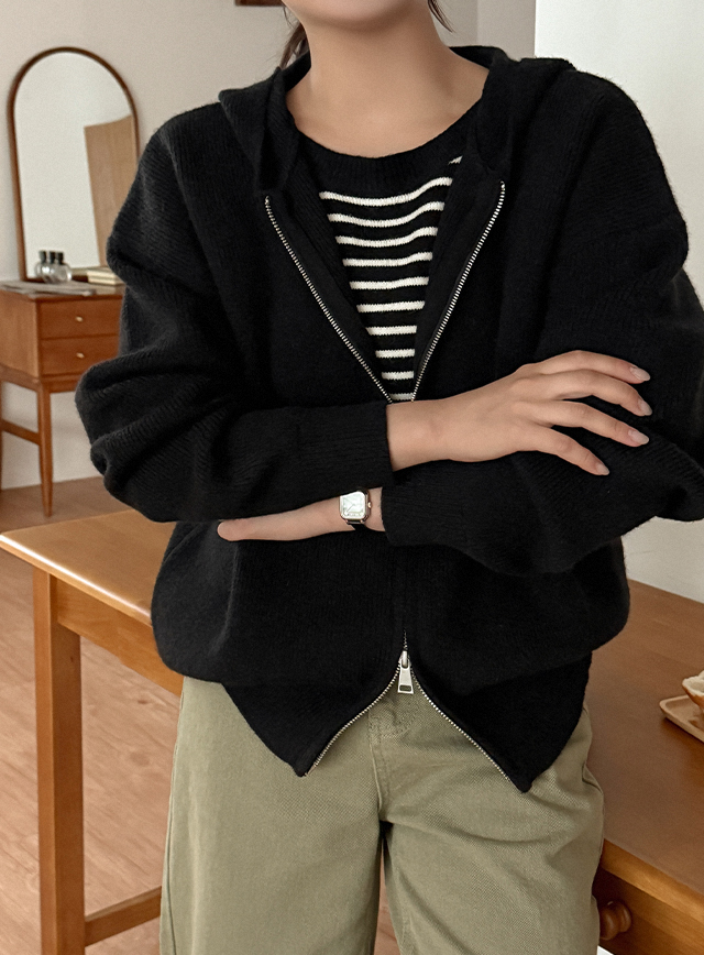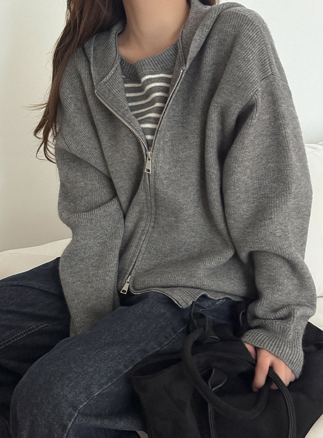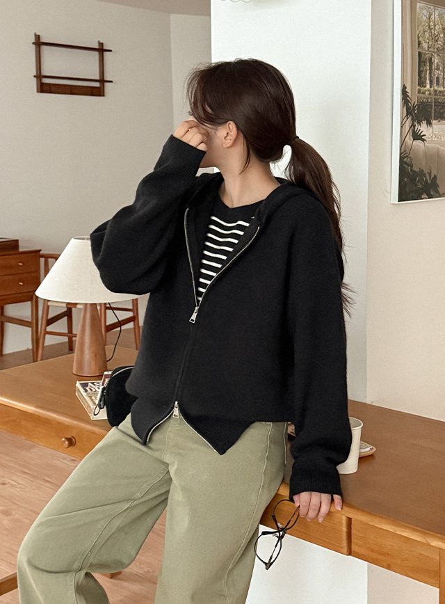 류이티 分層 寬鬆 帶帽拉鍊 83669